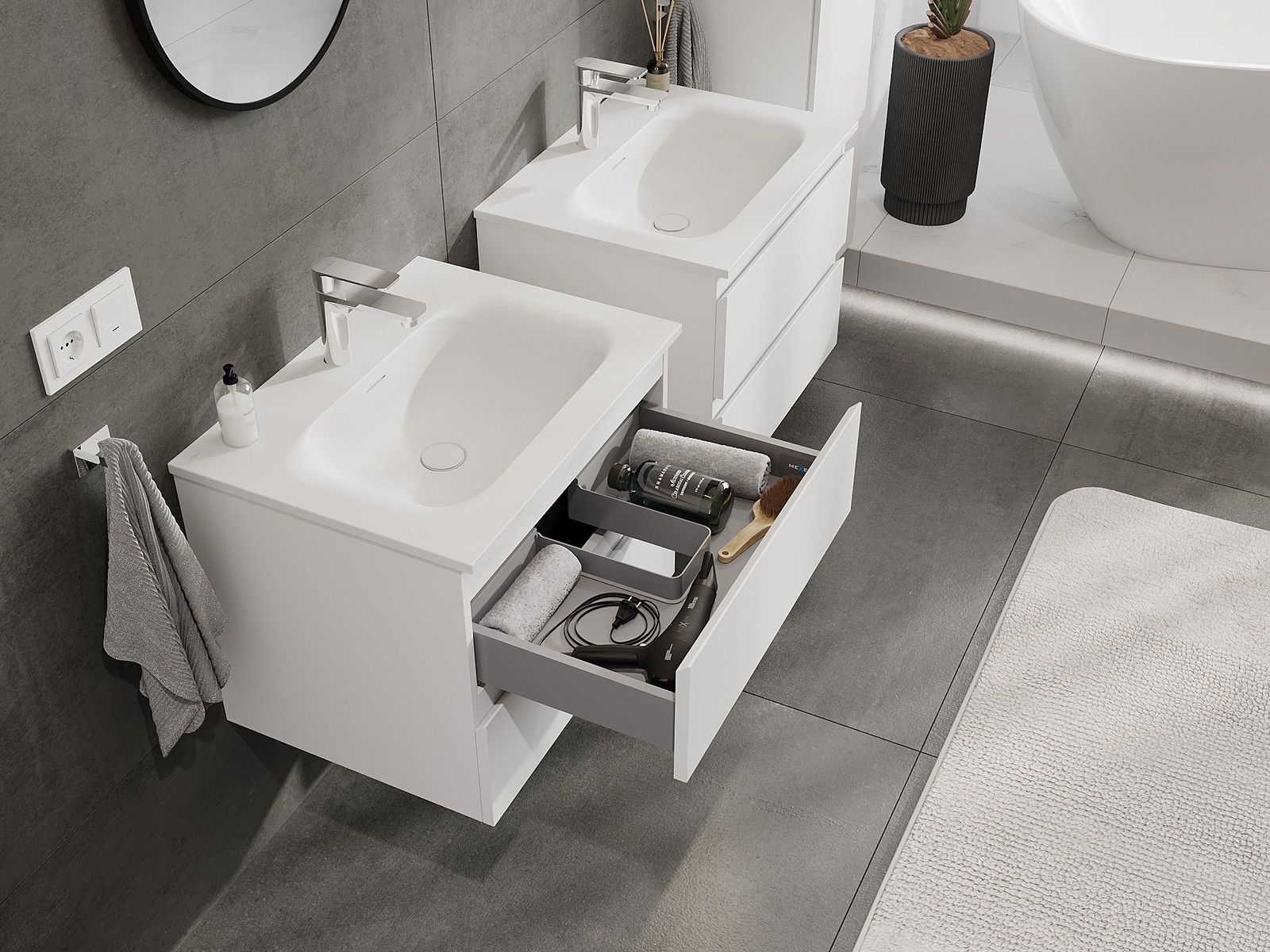 Korpus skrinky je dodávaný v plne zloženej podobe, čo znamená maximálne pohodlie a úsporu času. Nemusíte strácať hodiny skladaním nábytku – stačí ho namontovať na vybrané miesto v kúpeľni. Je to ideálne riešenie pre osoby, ktoré si cenia rýchlu montáž a okamžitý efekt.