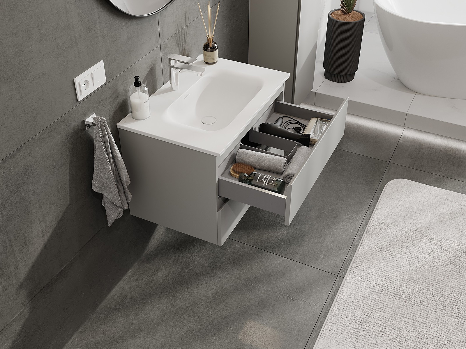 Naše modulárne kúpeľňové nábytkové prvky možno kombinovať v rôznych farebných konfiguráciách, čo umožňuje úplnú personalizáciu. Môžete si vybrať vzhľad aj funkcie jednotlivých prvkov, čo umožňuje prispôsobiť nábytok vašim vlastným štýlovým a používateľským preferenciám.