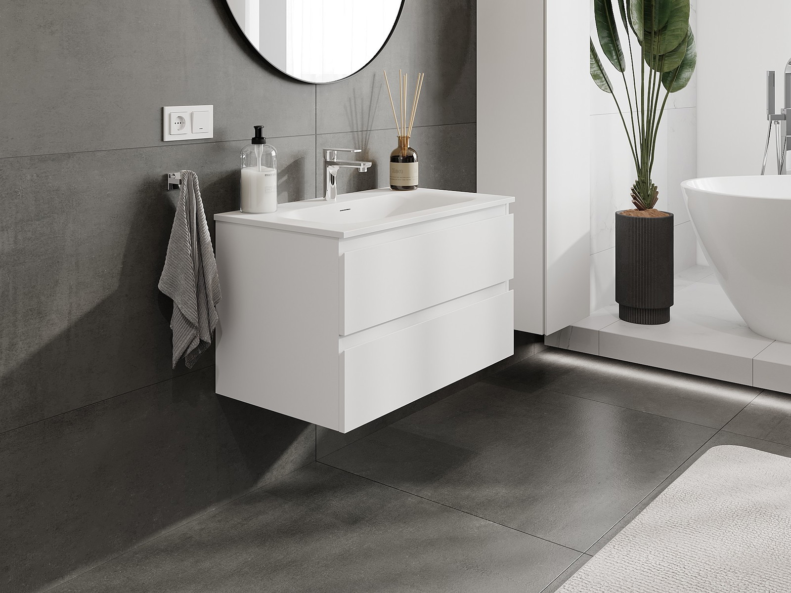 Naše modulárne kúpeľňové nábytkové prvky možno kombinovať v rôznych farebných konfiguráciách, čo umožňuje úplnú personalizáciu. Môžete si vybrať vzhľad aj funkcie jednotlivých prvkov, čo umožňuje prispôsobiť nábytok vašim vlastným štýlovým a používateľským preferenciám.