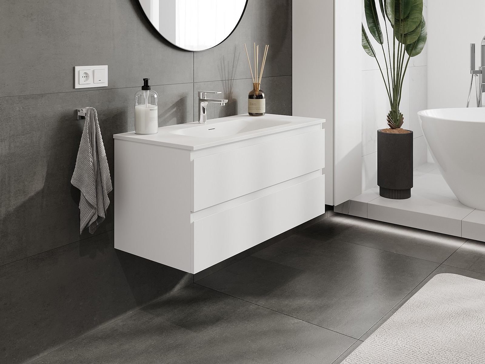 Naše modulárne kúpeľňové nábytkové prvky možno kombinovať v rôznych farebných konfiguráciách, čo umožňuje úplnú personalizáciu. Môžete si vybrať vzhľad aj funkcie jednotlivých prvkov, čo umožňuje prispôsobiť nábytok vašim vlastným štýlovým a používateľským preferenciám.