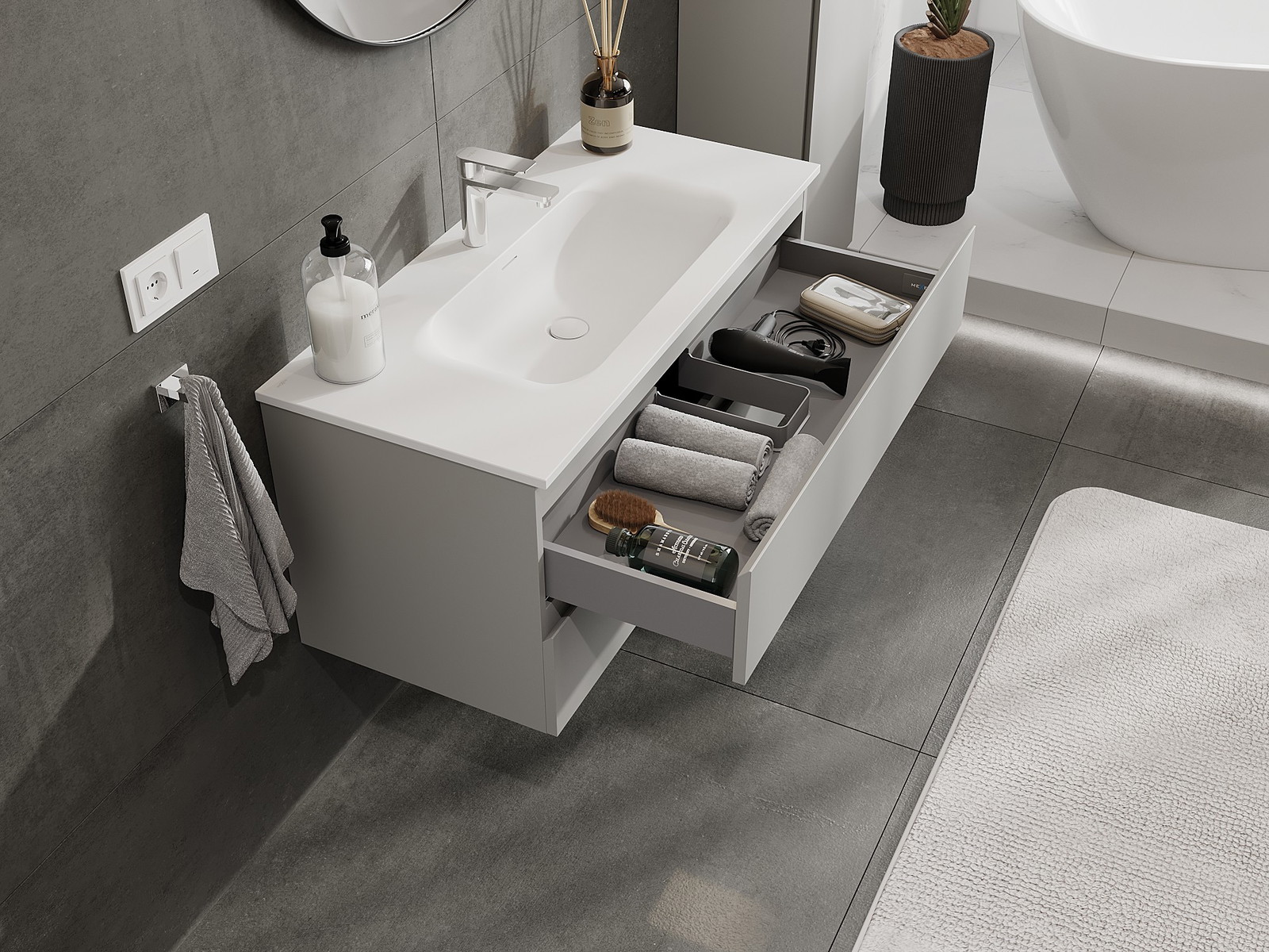 Naše modulárne kúpeľňové nábytkové prvky možno kombinovať v rôznych farebných konfiguráciách, čo umožňuje úplnú personalizáciu. Môžete si vybrať vzhľad aj funkcie jednotlivých prvkov, čo umožňuje prispôsobiť nábytok vašim vlastným štýlovým a používateľským preferenciám.