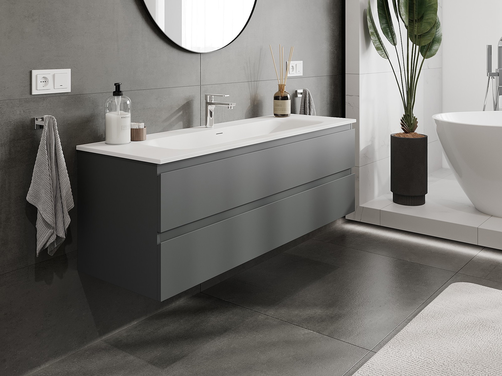 Naše modulárne kúpeľňové nábytkové prvky možno kombinovať v rôznych farebných konfiguráciách, čo umožňuje úplnú personalizáciu. Môžete si vybrať vzhľad aj funkcie jednotlivých prvkov, čo umožňuje prispôsobiť nábytok vašim vlastným štýlovým a používateľským preferenciám.