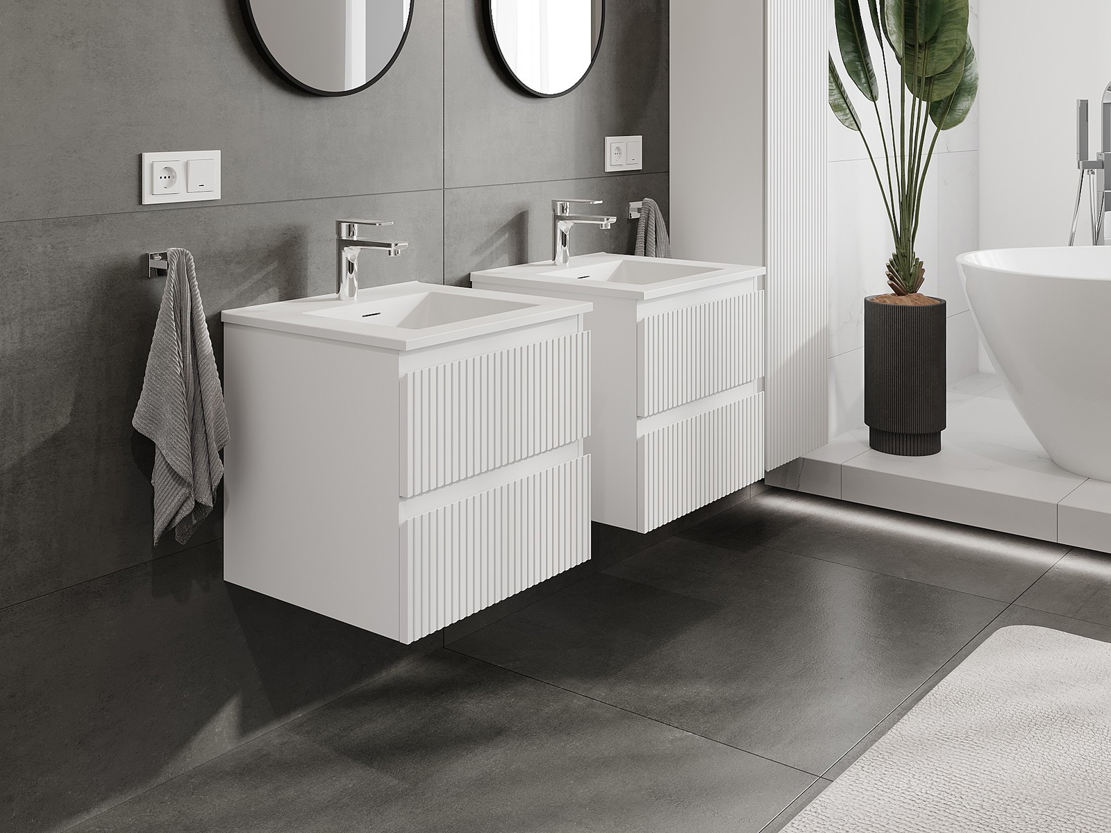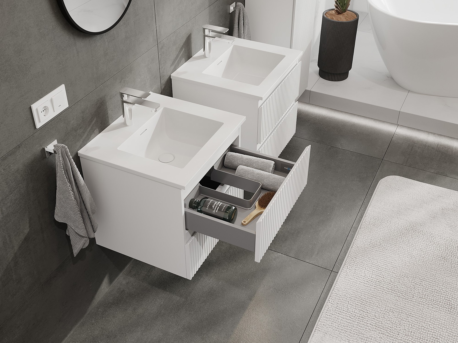 Naše modulárne kúpeľňové nábytkové prvky možno kombinovať v rôznych farebných konfiguráciách, čo umožňuje úplnú personalizáciu. Môžete si vybrať vzhľad aj funkcie jednotlivých prvkov, čo umožňuje prispôsobiť nábytok vašim vlastným štýlovým a používateľským preferenciám.