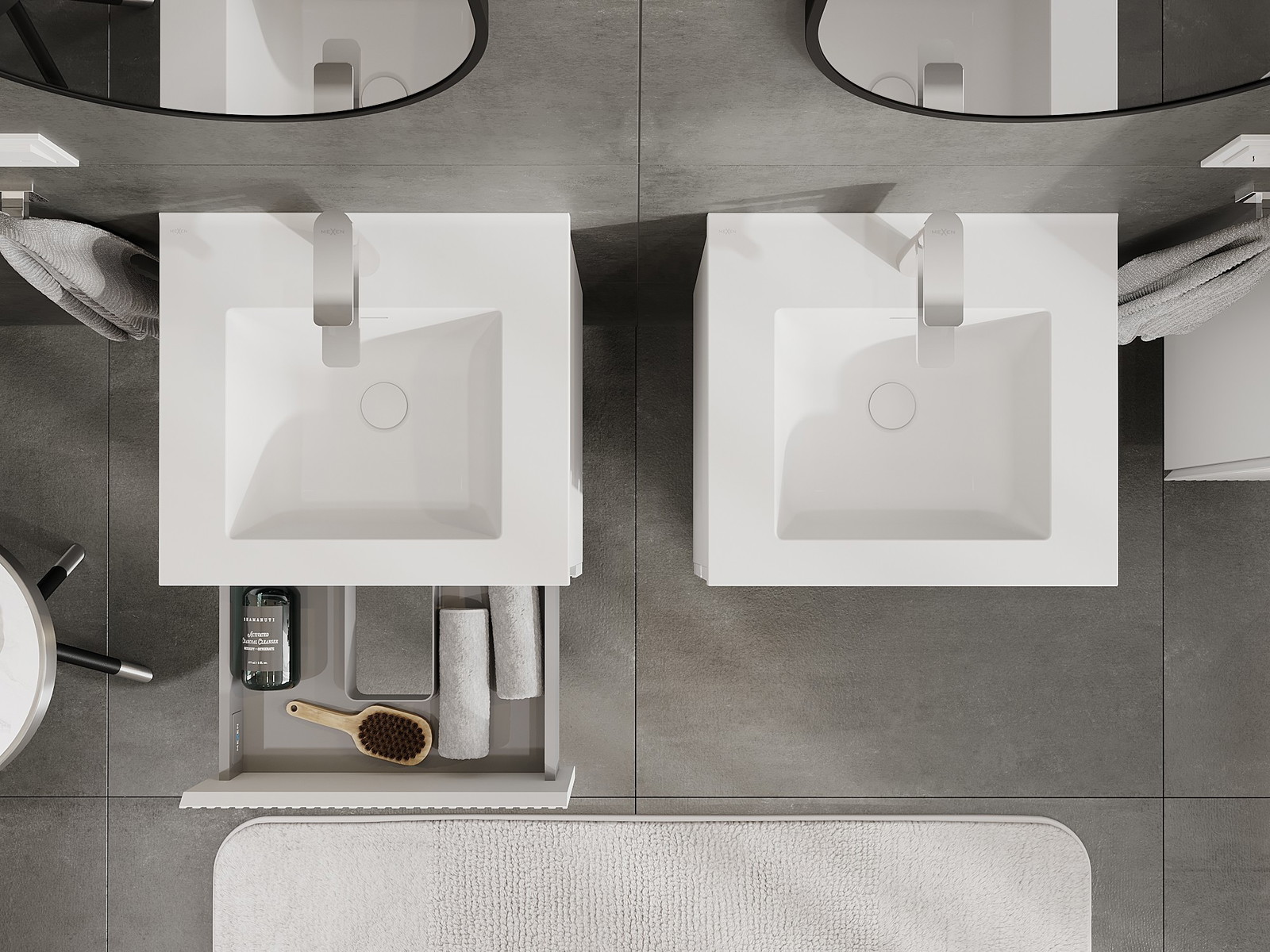 Výrez v zásuvke je navrhnutý tak, aby pojal sifón, ktorý je nevyhnutný v umývadlových inštaláciách. Vďaka tomu môže byť nábytok namontovaný plne funkčne, bez nutnosti vzdávať sa priestoru v zásuvke v prospech inštalácie.
