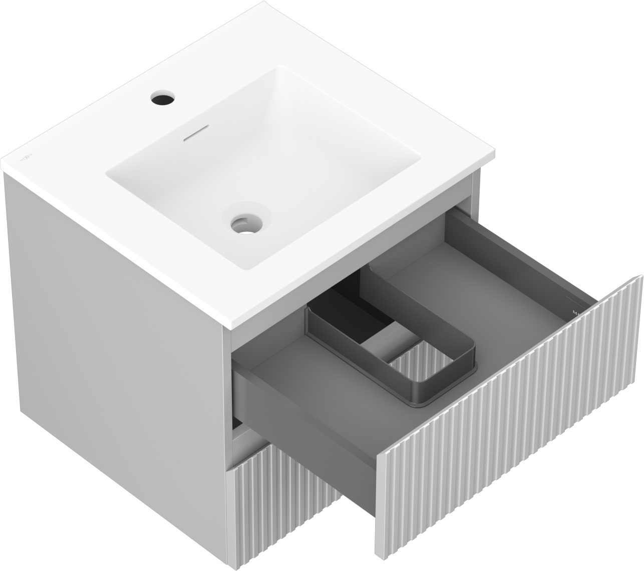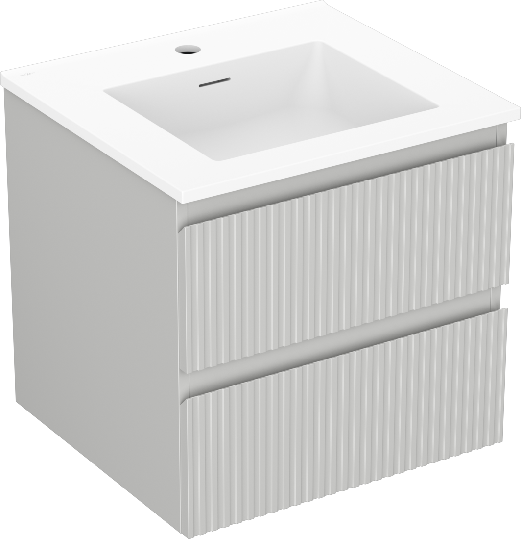 Mexen Rivel kúpeľňová skrinka 50 cm s umývadlom Otis, 2 zásuvky, ryhovaná, sivá mat/biela mat - 91A20-05047-2-BFF62-W18M01