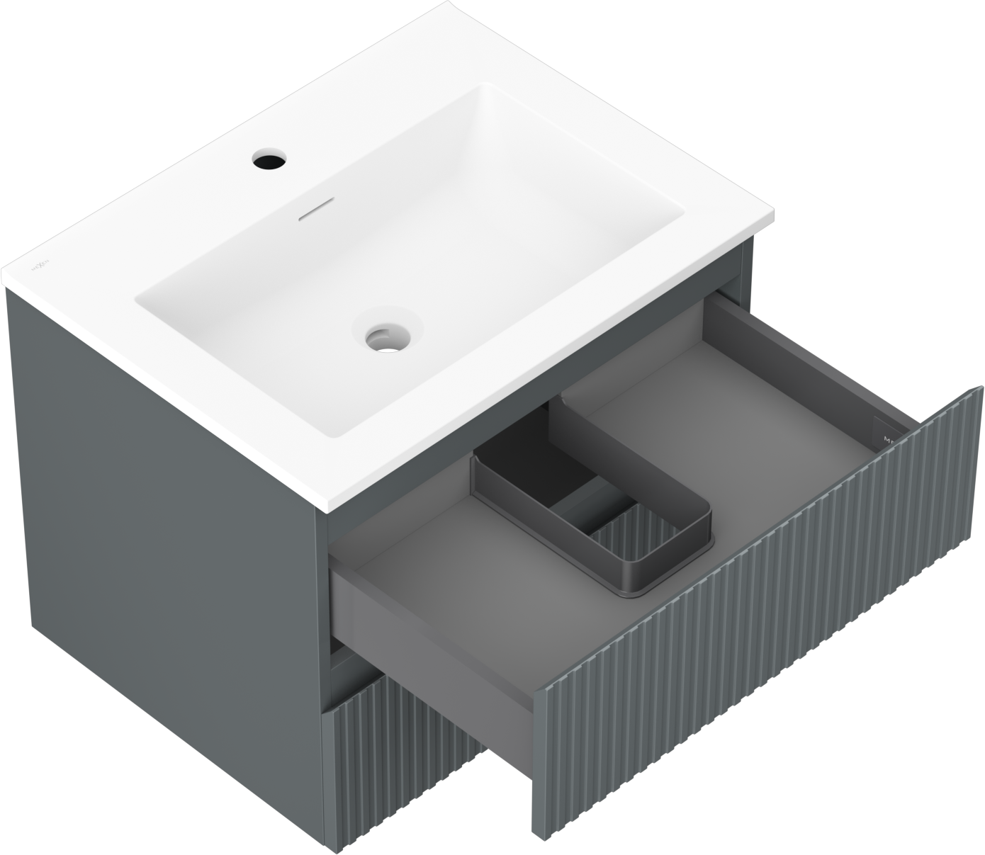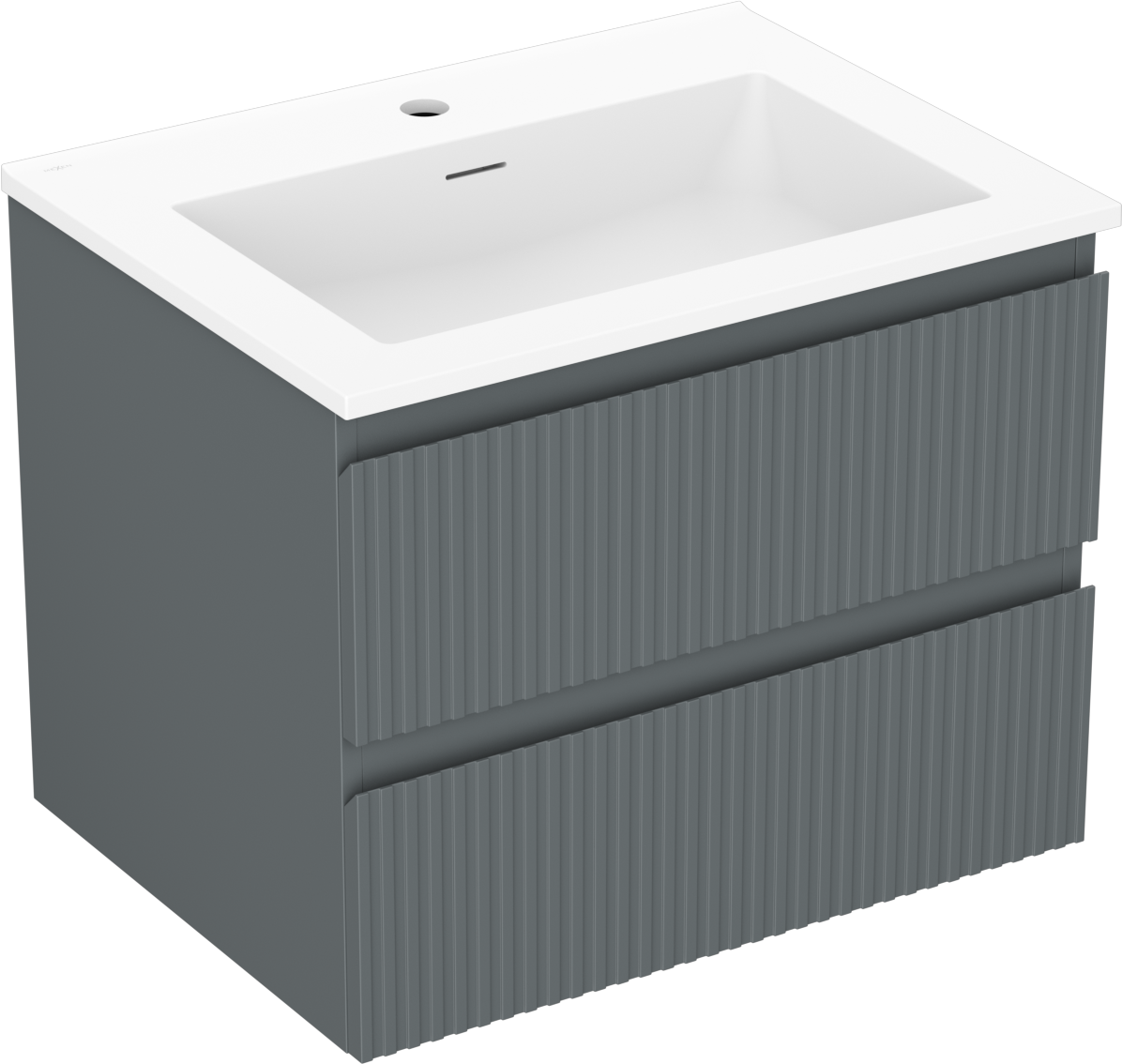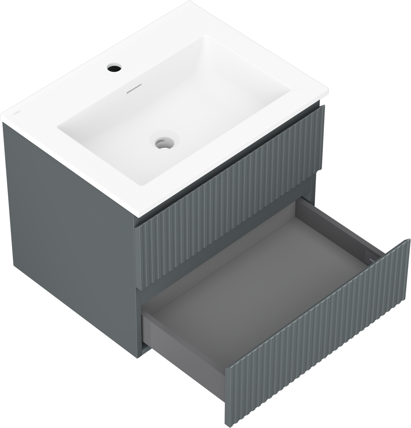 Mexen Rivel kúpeľňová skrinka 60 cm s umývadlom Otis, 2 zásuvky, hrubo ryhované, grafitová matná/biela matná -