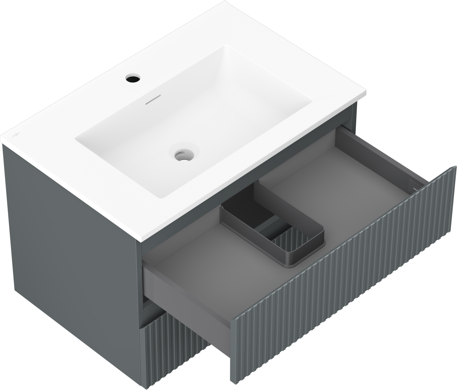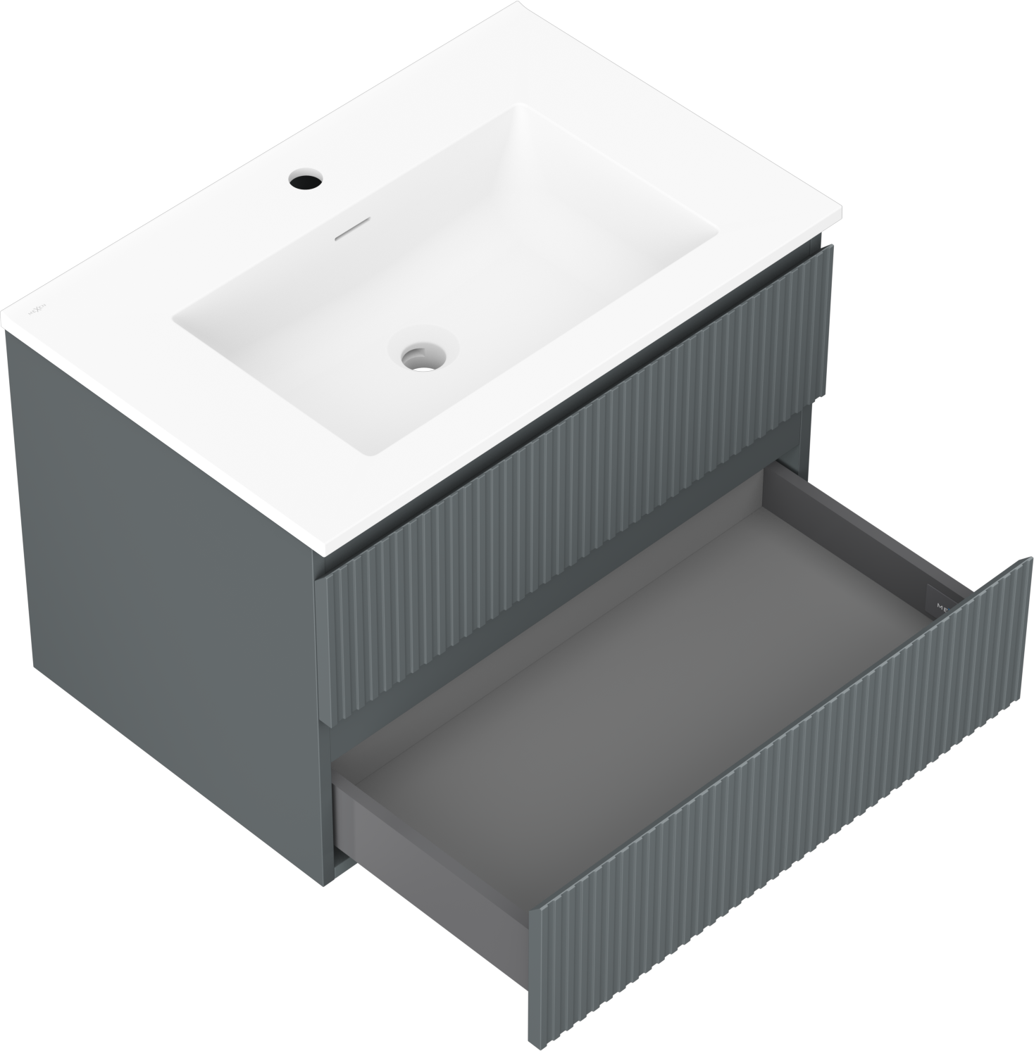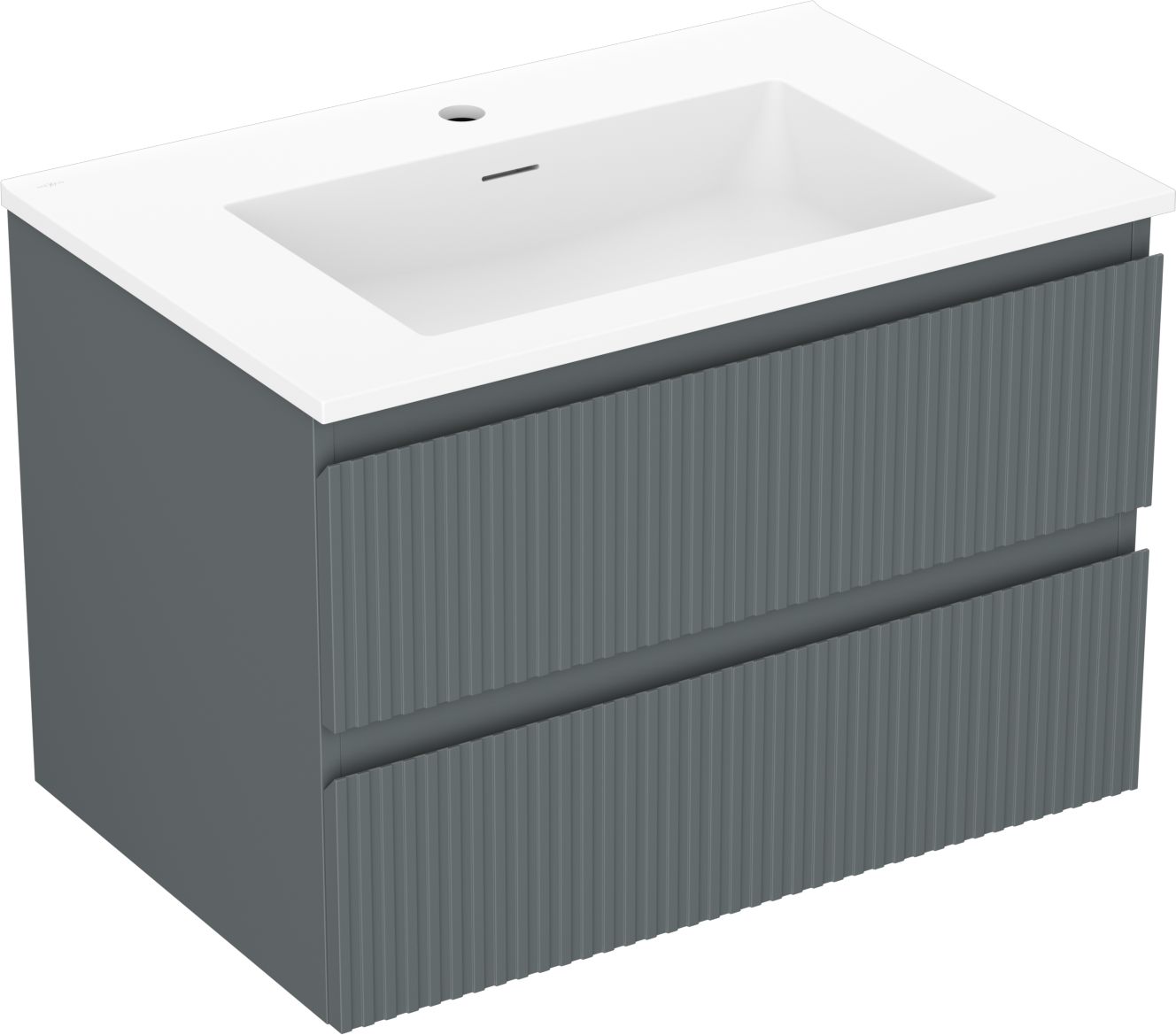 Mexen Rivel kúpeľňová skrinka 70 cm s umývadlom Otis, 2 zásuvky, ryhovaná, grafitová matná/biela matná -