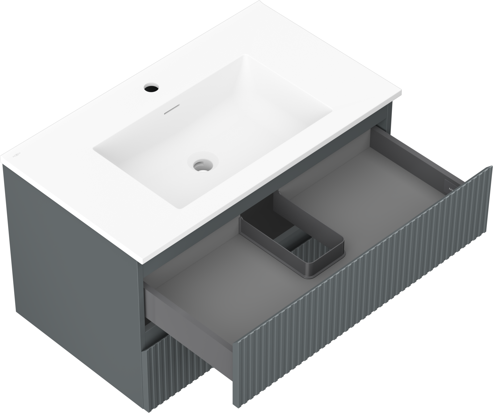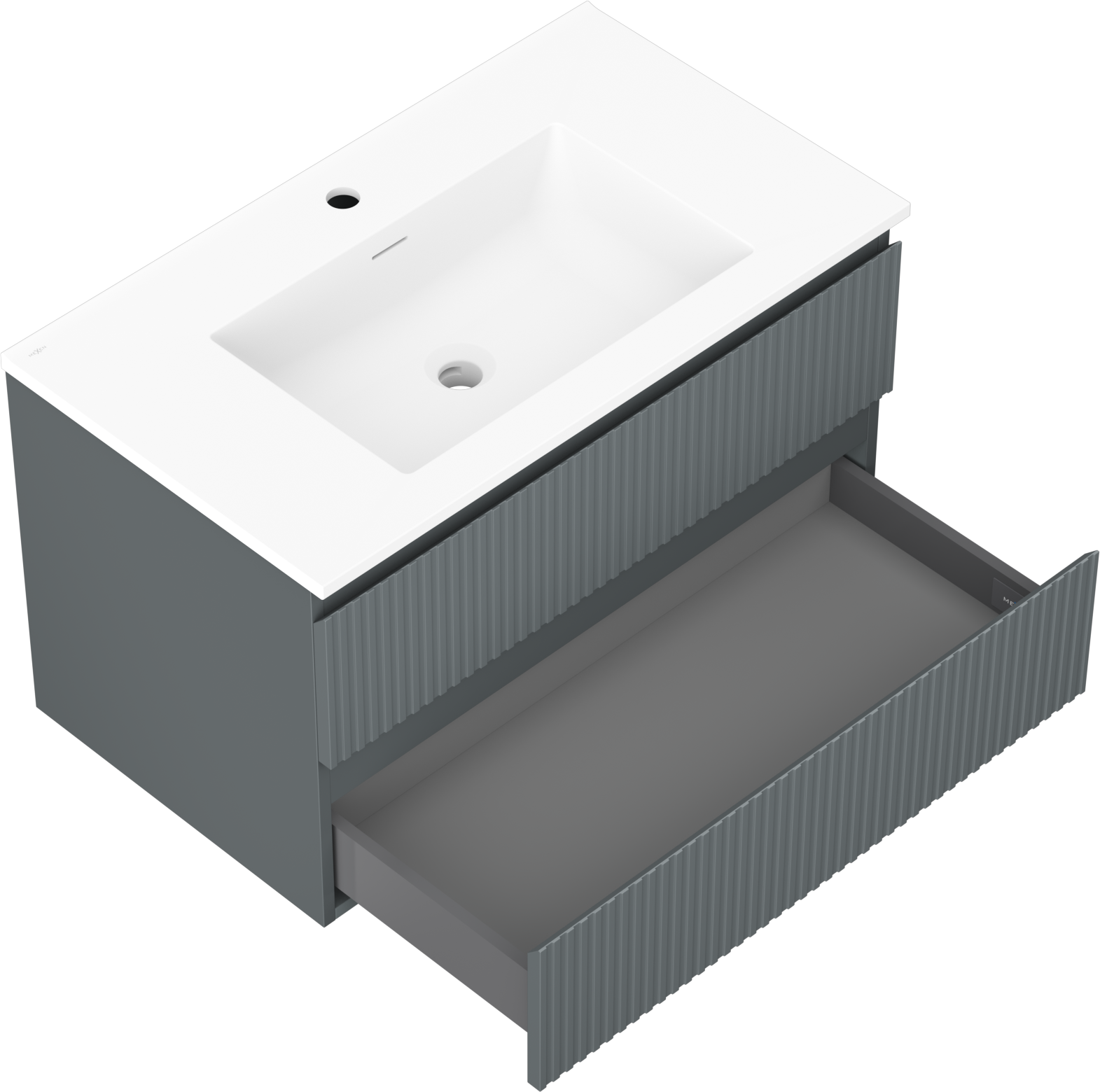 Mexen Rivel kúpeľňová skrinka 80 cm s umývadlom Otis, 2 zásuvky, ryhovaná, grafitová matná/biela matná -
