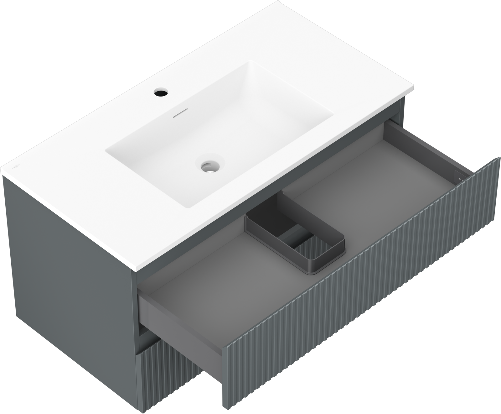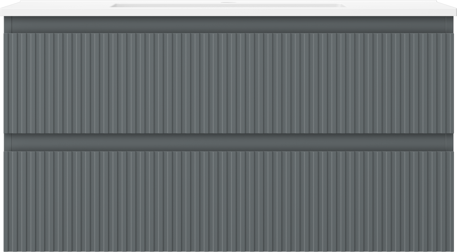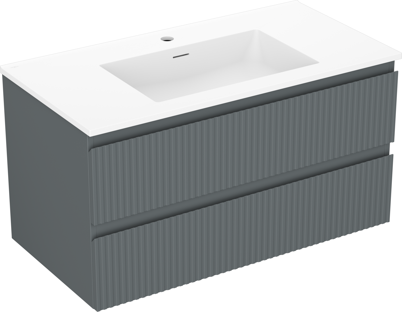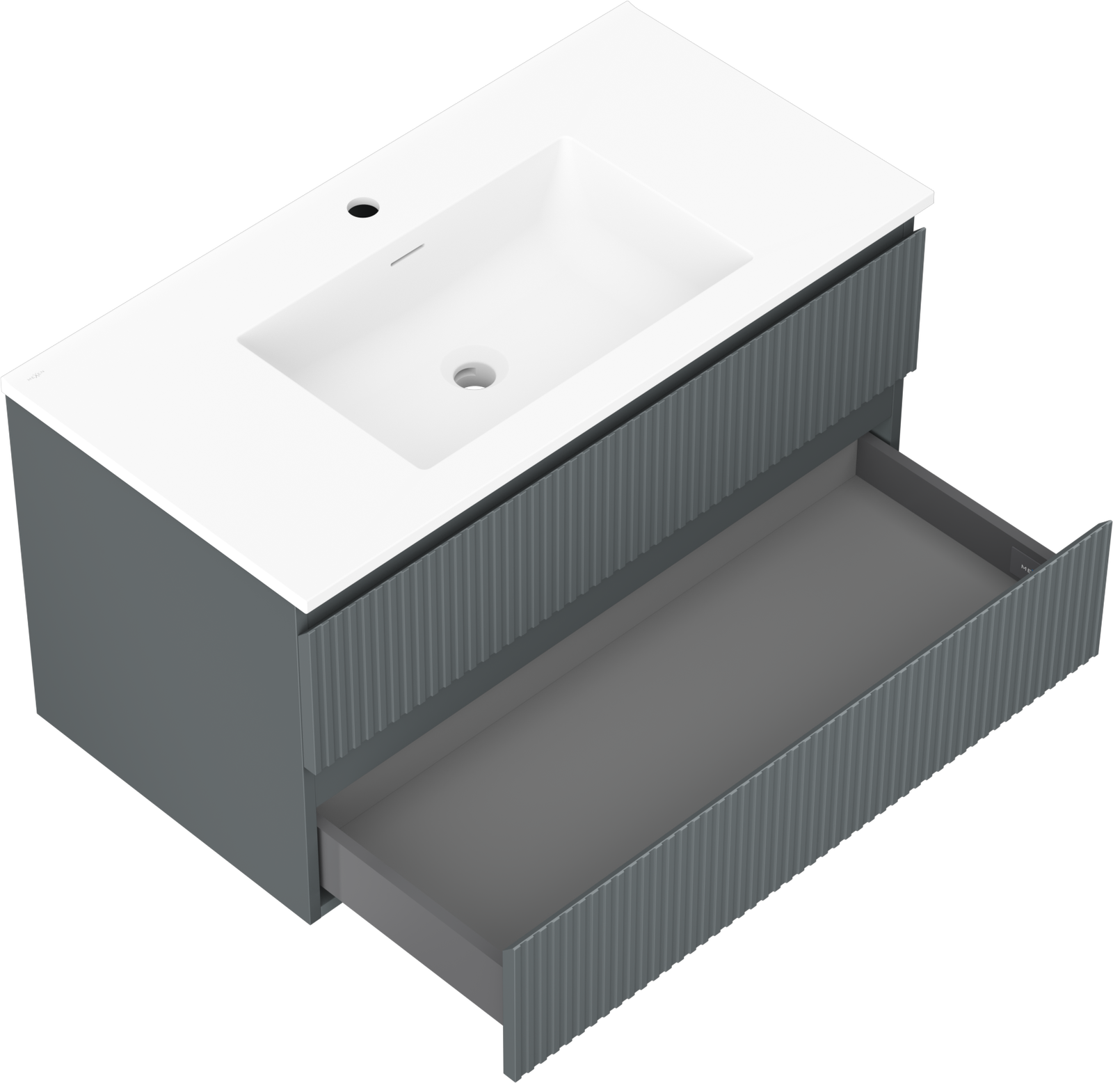Mexen Rivel kúpeľňová skrinka 90 cm s umývadlom Otis, 2 zásuvky, ryhovaná, grafit mat/biela mat -