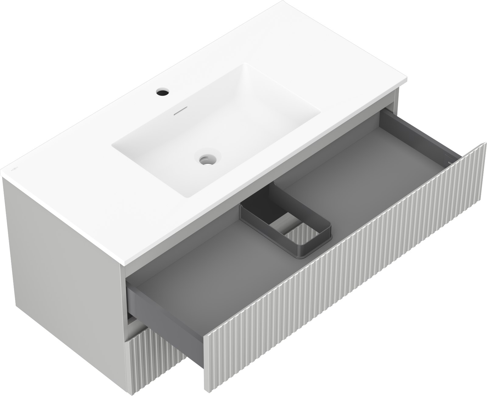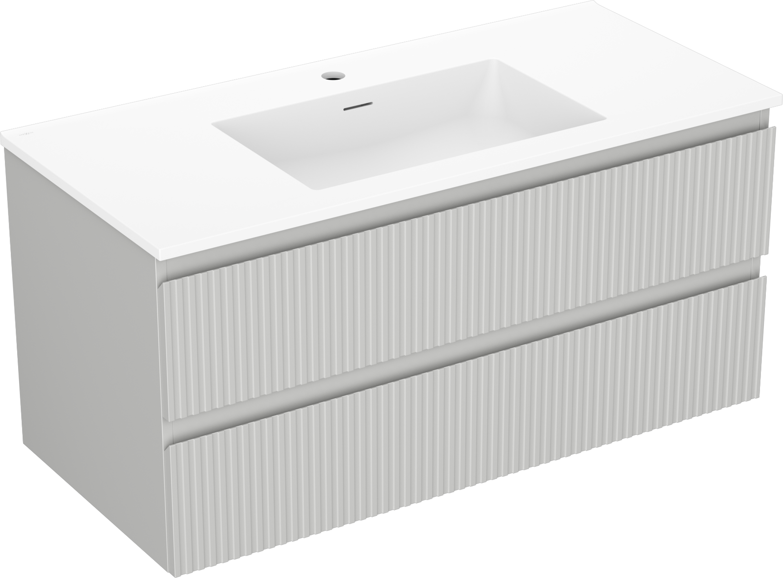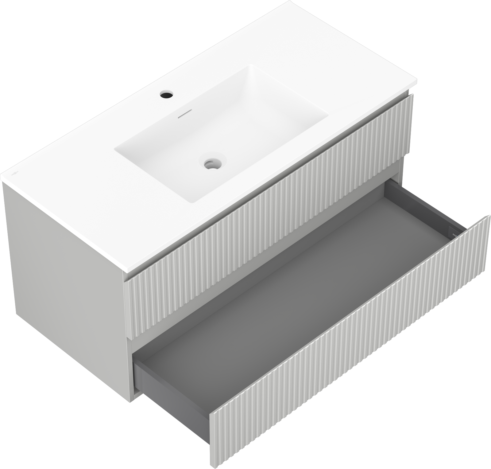 Mexen Rivel kúpeľňová skrinka 100 cm s umývadlom Otis, 2 zásuvky, ryhovaná, šedá matná/biela matná - 91A20-10047-2-BFF62-W18M01