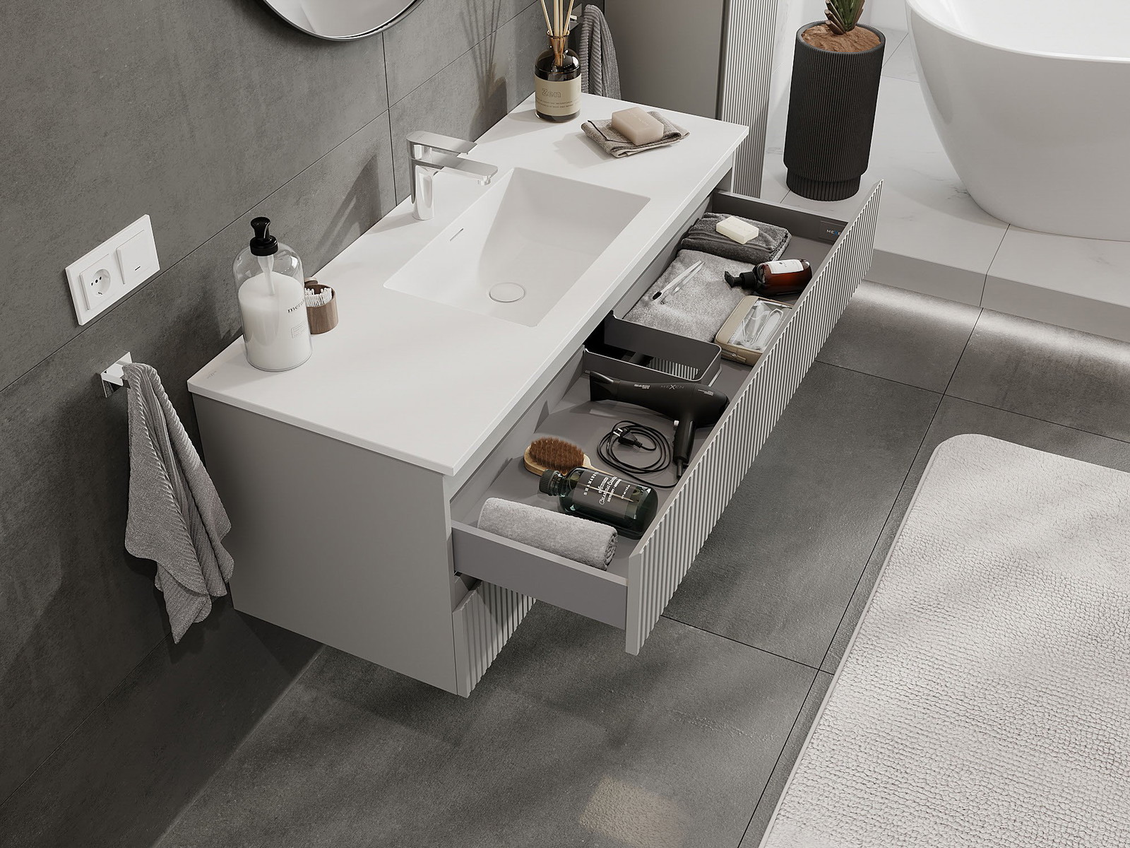 Naše modulárne kúpeľňové nábytkové prvky možno kombinovať v rôznych farebných konfiguráciách, čo umožňuje úplnú personalizáciu. Môžete si vybrať vzhľad aj funkcie jednotlivých prvkov, čo umožňuje prispôsobiť nábytok vašim vlastným štýlovým a používateľským preferenciám.