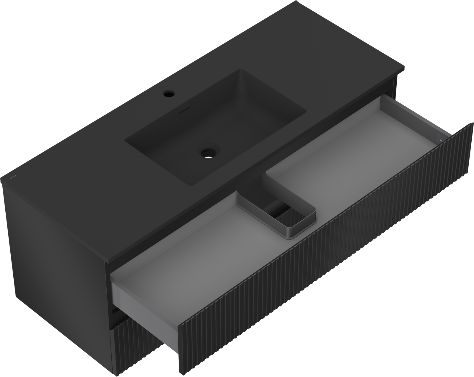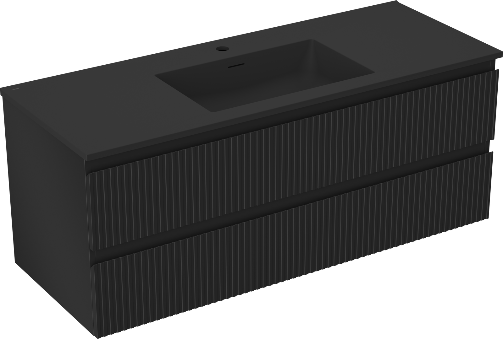Mexen Rivel kúpeľňová skrinka 120 cm s umývadlom Otis, 2 zásuvky, ryhovaná, čierna mat - 91A20-12047-2-BFF71-W18M71