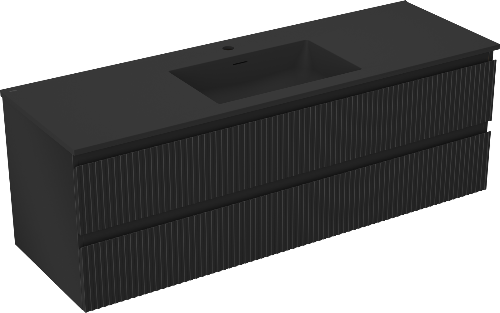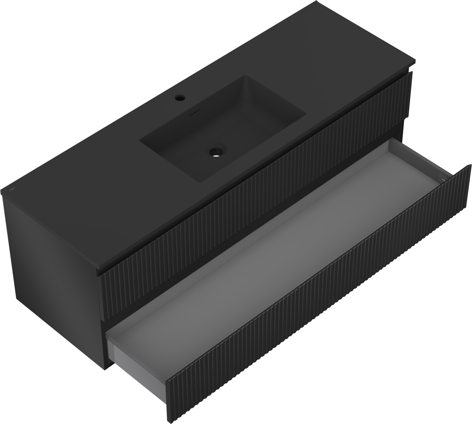 Mexen Rivel kúpeľňová skrinka 140 cm s umývadlom Otis, 2 zásuvky, ryhovaná, čierna matná - 91A20-14047-2-BFF71-W18M71