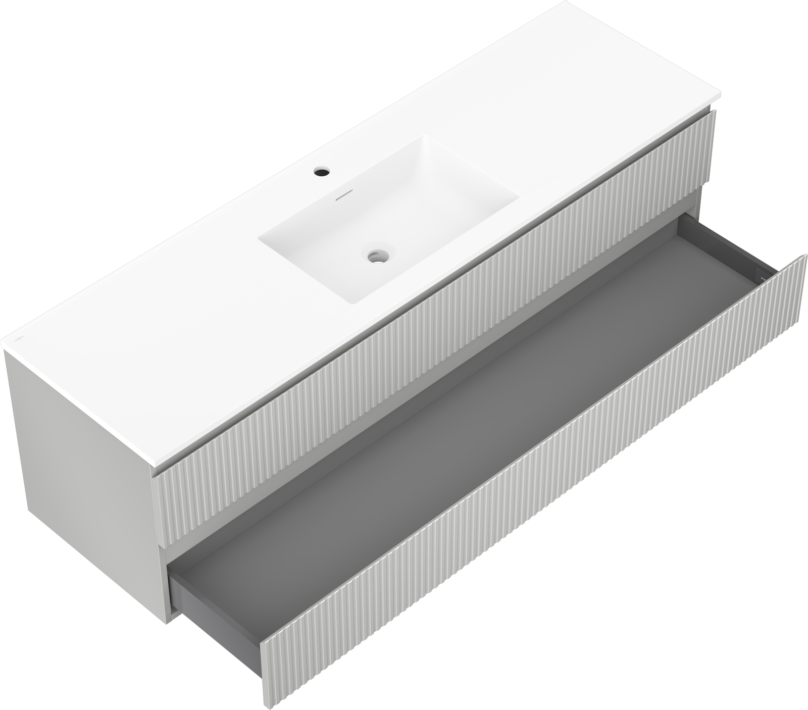 Mexen Rivel kúpeľňová skrinka 160 cm s umývadlom Otis, 2 zásuvky, ryhovaná, sivá matná/biela matná -