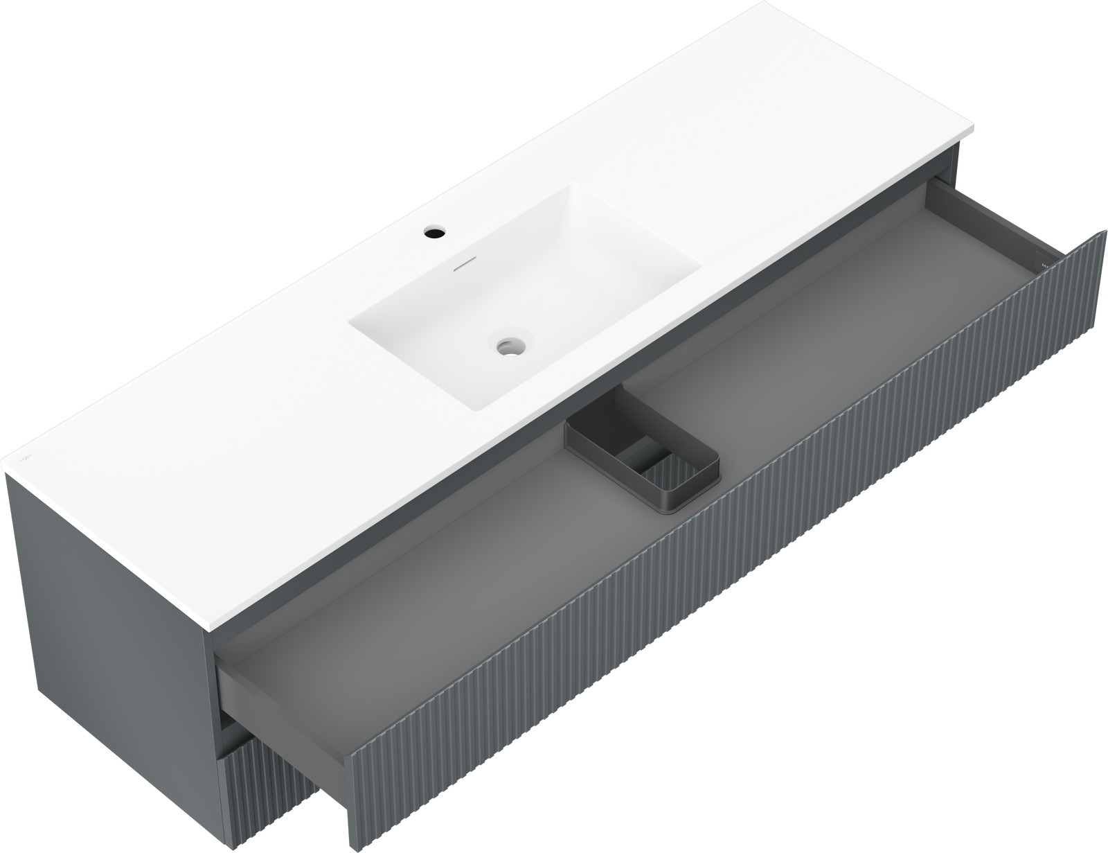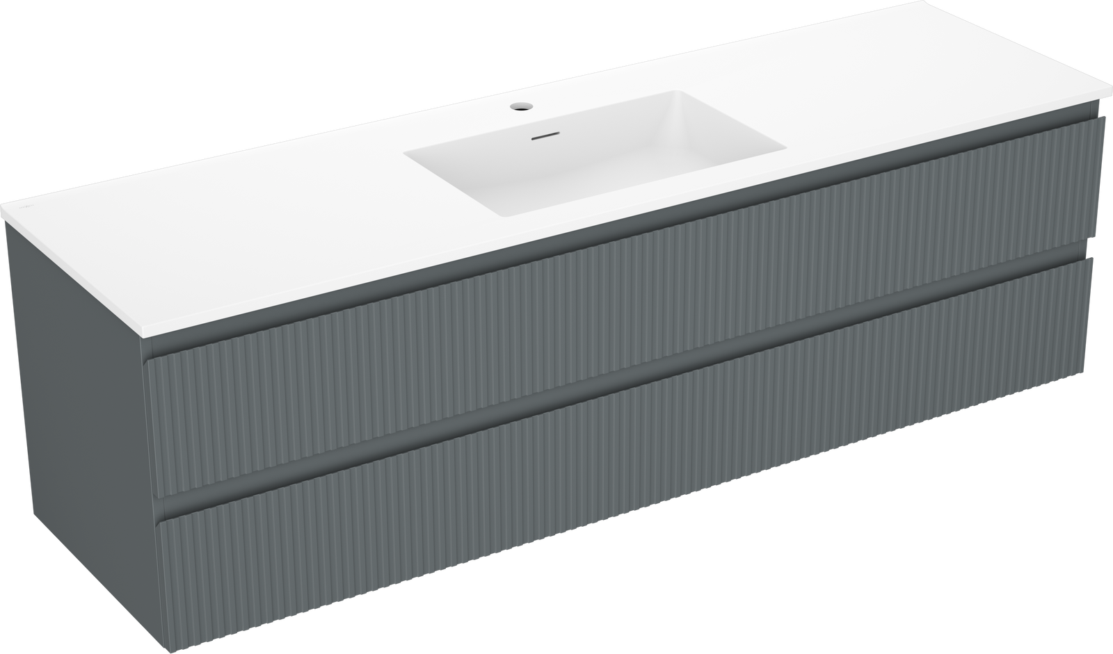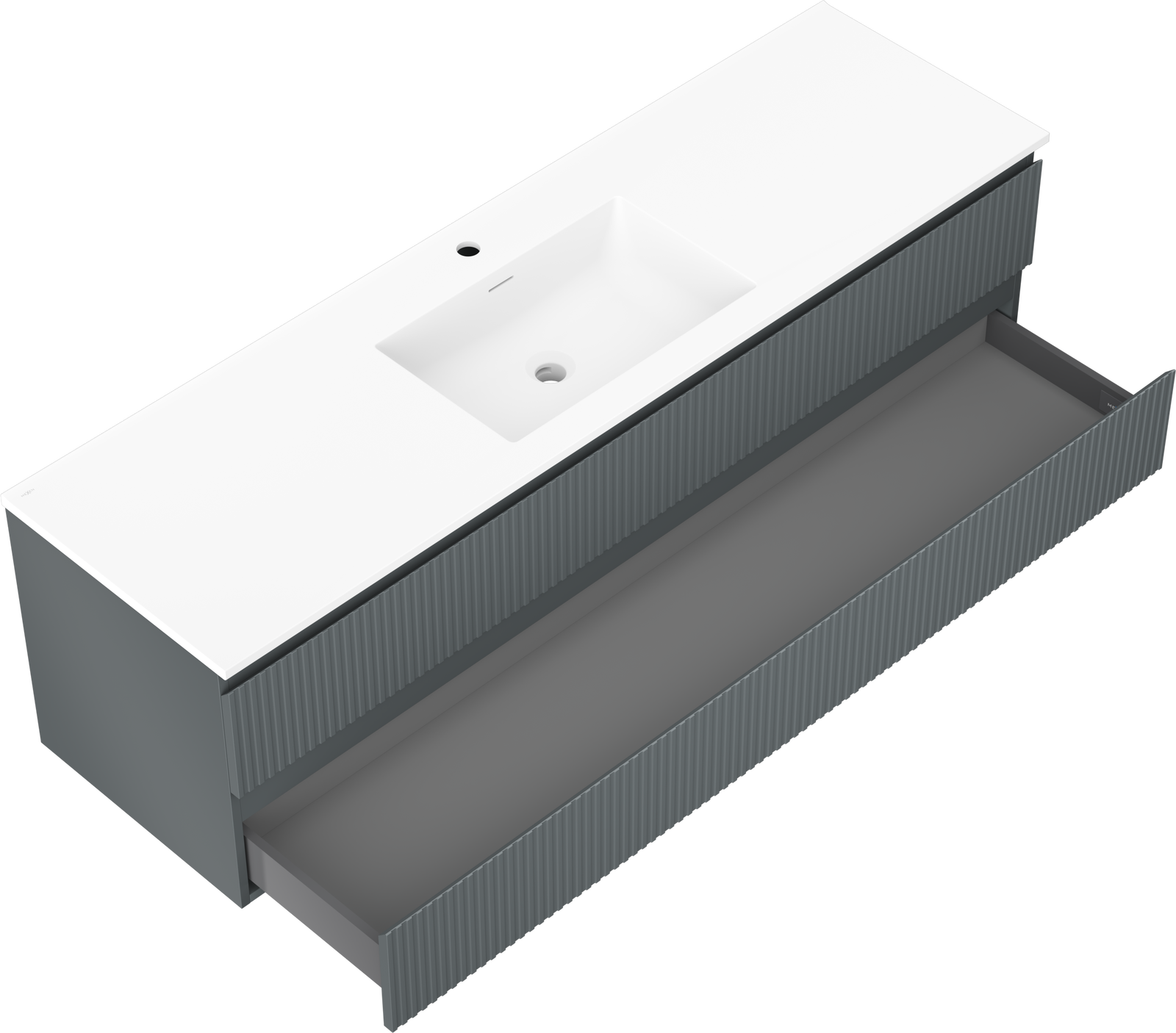 Mexen Rivel kúpeľňová skrinka 160 cm s umývadlom Otis, 2 zásuvky, s rebrovaním, grafitová matná/biela matná -