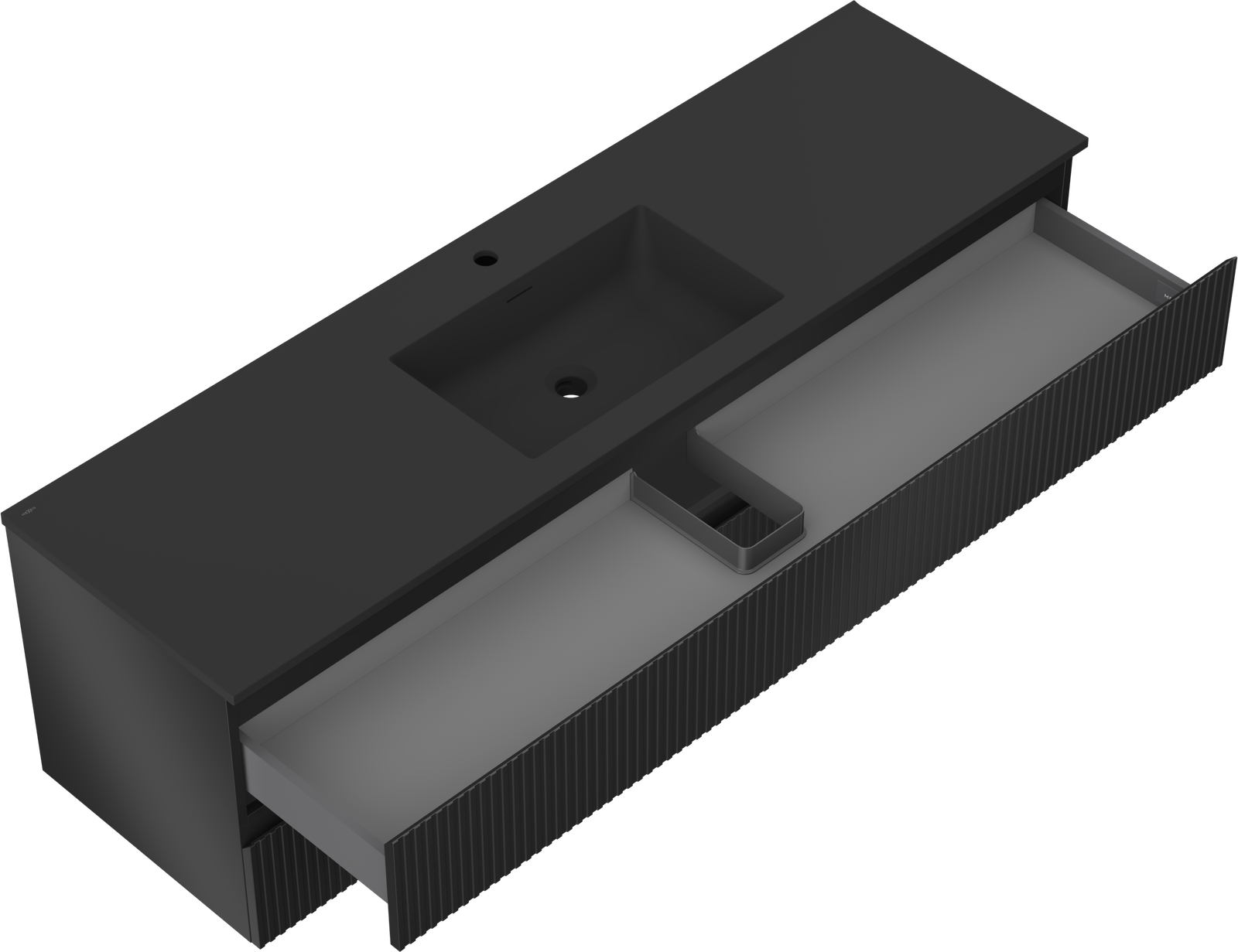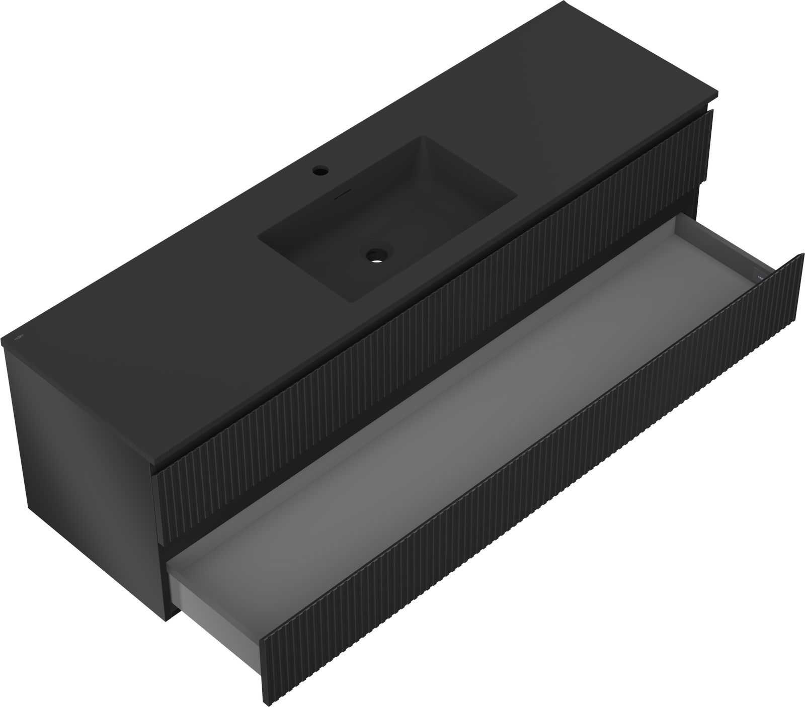 Mexen Rivel skrinka do kúpeľne 160 cm s umývadlom Otis, 2 zásuvky, ryhovaná, čierny mat - 91A20-16047-2-BFF71-W18M71