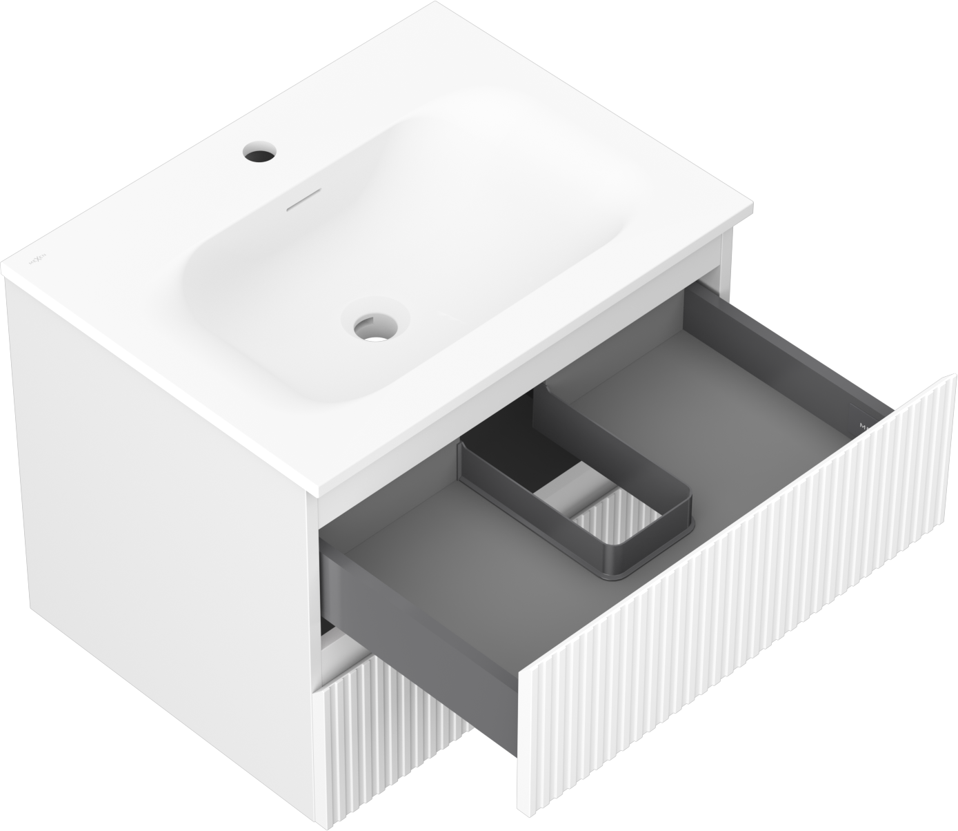 Výrez v zásuvke je navrhnutý tak, aby pojal sifón, ktorý je nevyhnutný v umývadlových inštaláciách. Vďaka tomu môže byť nábytok namontovaný plne funkčne, bez nutnosti vzdávať sa priestoru v zásuvke v prospech inštalácie.