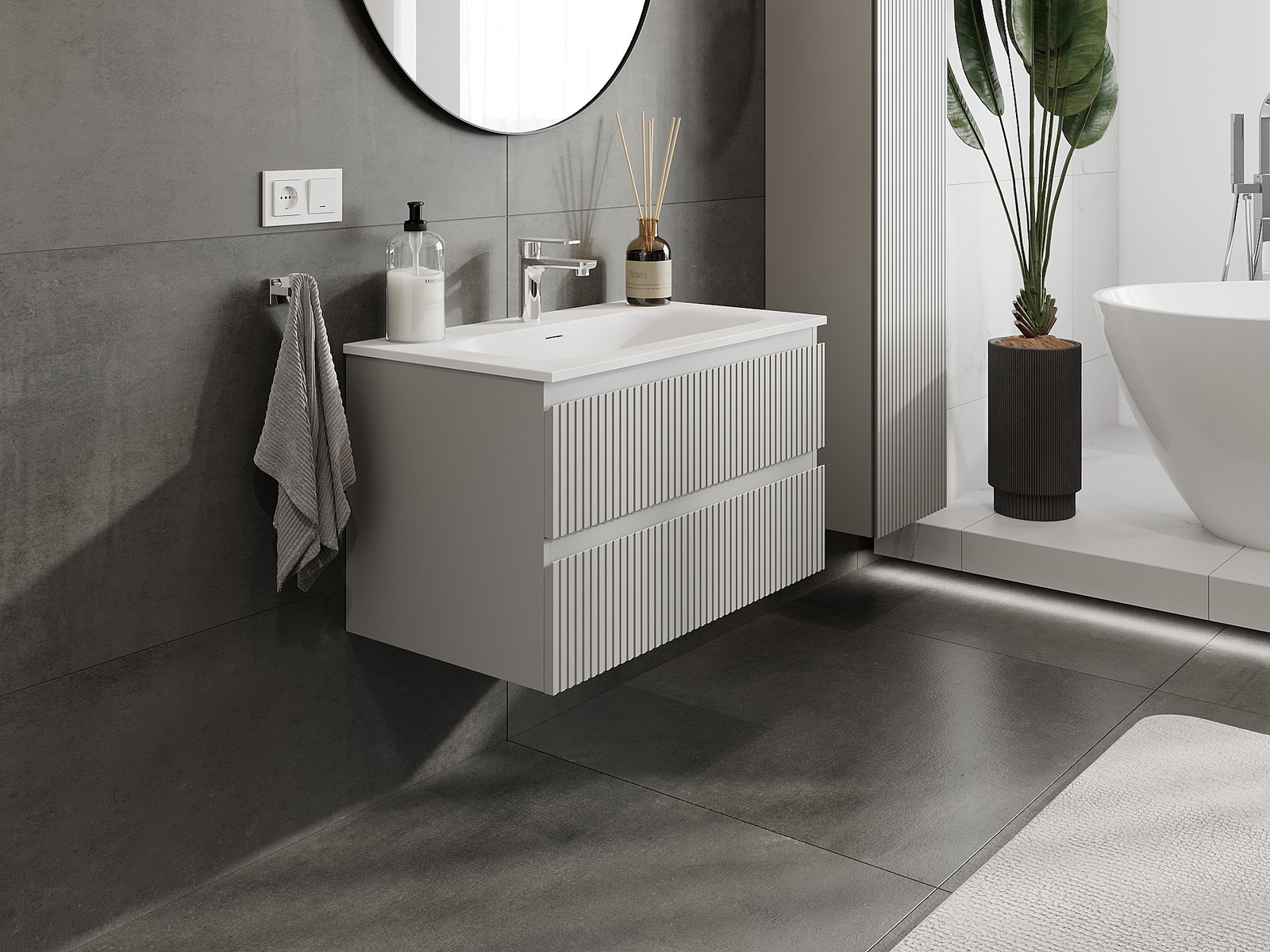 Vďaka pevným materiálom, precíznemu prevedeniu a moderným technologickým riešeniam, produkt poskytuje pohodlie používania, odolnosť voči vlhkosti a zmenám teploty, ako aj elegantný vzhľad, ktorý sa hodí k rôznym štýlom kúpeľní.