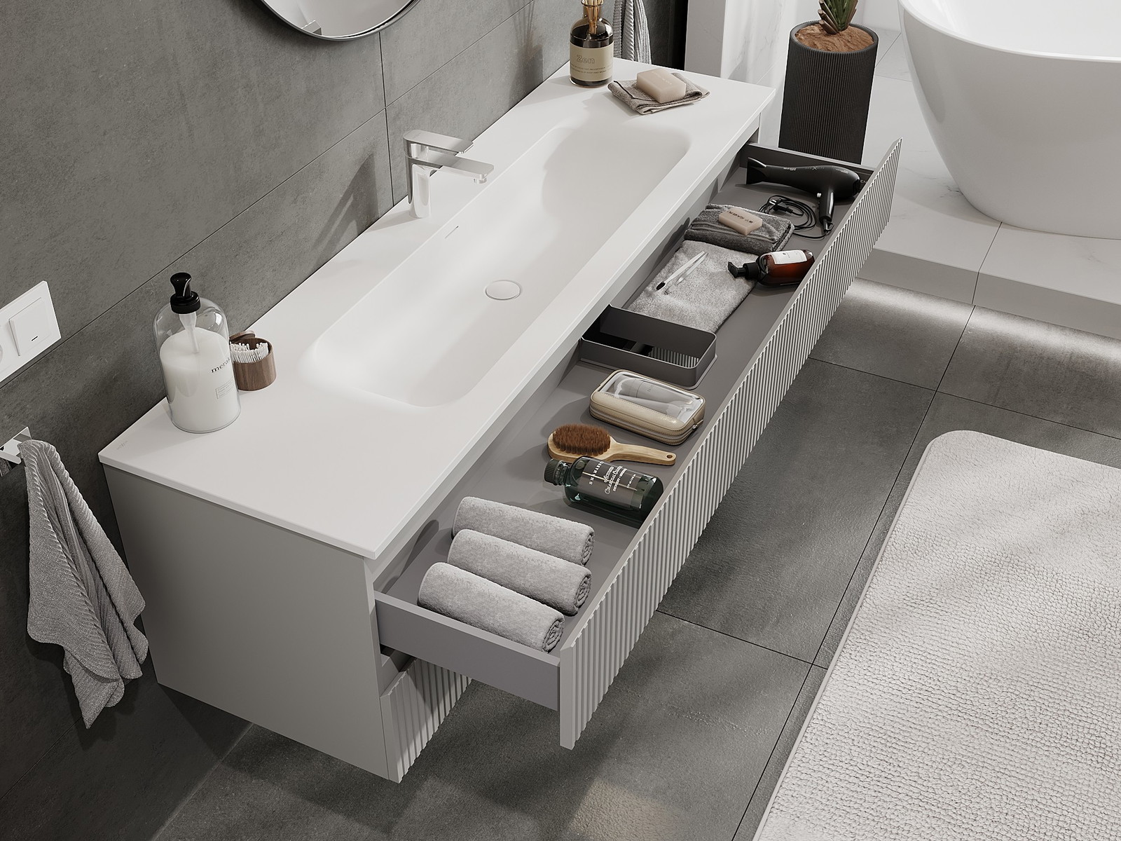 Naše modulárne kúpeľňové nábytkové prvky možno kombinovať v rôznych farebných konfiguráciách, čo umožňuje úplnú personalizáciu. Môžete si vybrať vzhľad aj funkcie jednotlivých prvkov, čo umožňuje prispôsobiť nábytok vašim vlastným štýlovým a používateľským preferenciám.