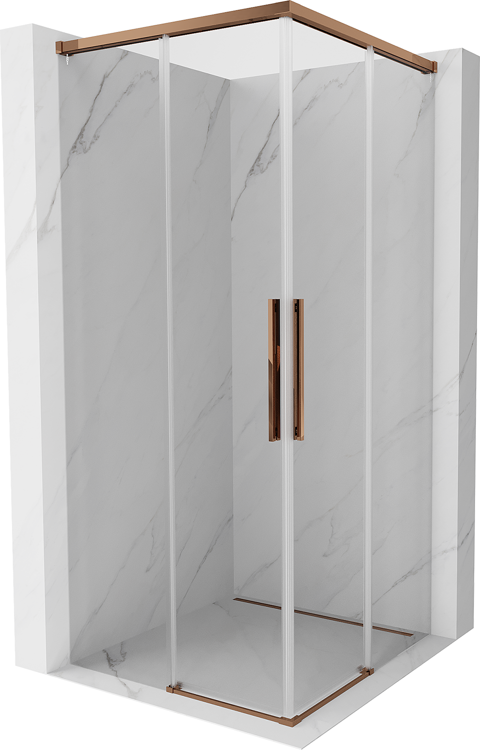 Mexen Rox Duo posuvná sprchová kabína 75 x 75 cm, transparentná, ružové zlato - 8C2D-075-075-60-00