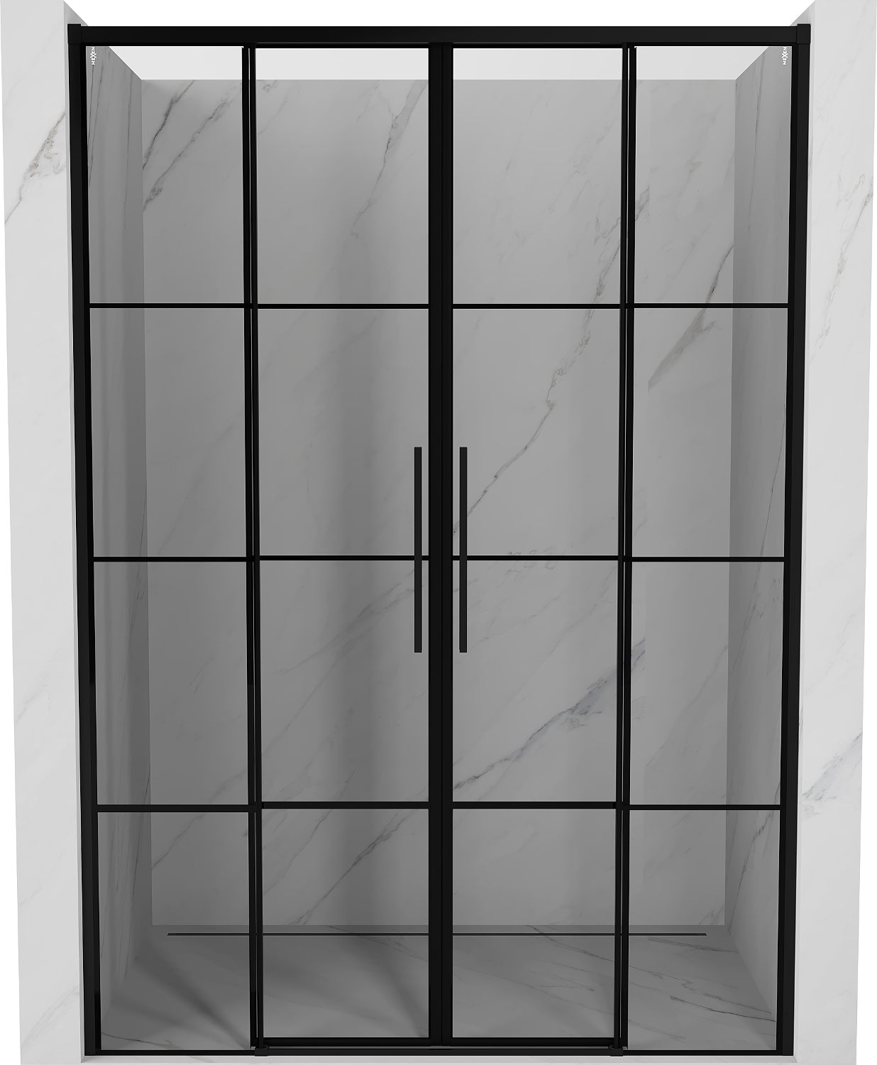Mexen Rox Dvojité posuvné sprchové dvere 150 cm, čierna mriežka, čierne - 8C2-150-002-70-77