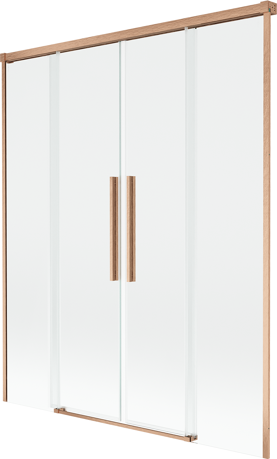 Mexen Rox vaňová zástena, 2-krídlová posuvná 160 x 150 cm, priehľadná, brúsená meď - 8C9-160-002-65-00
