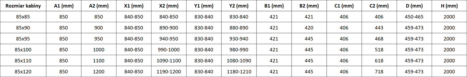 Veľkosť: 90x85 cm (pravé dvere 90 cm, ľavé dvere 85 cm)