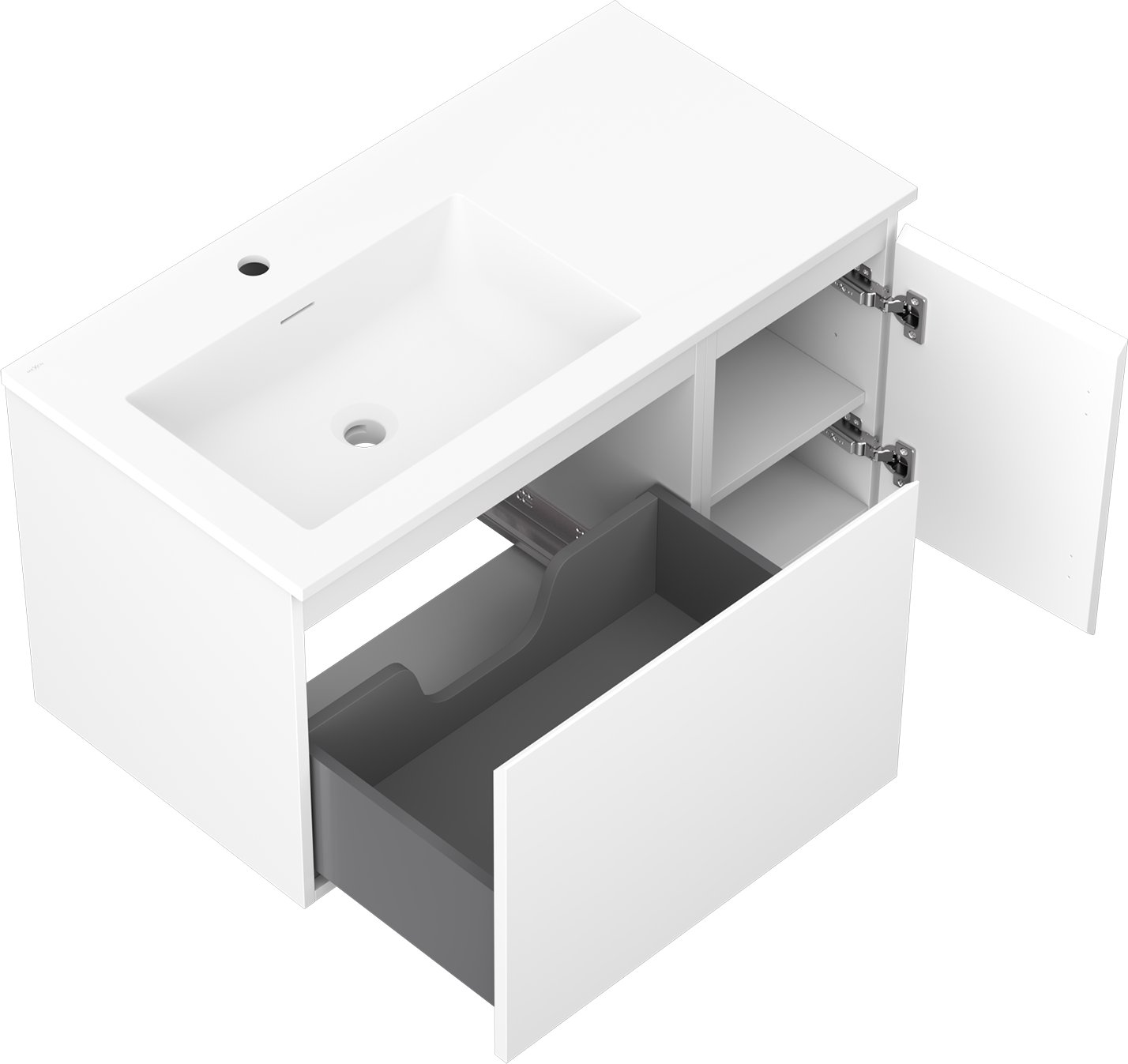 Mexen Orio kúpeľňová skrinka 90 cm s umývadlom Otis ľavá, 1S, 1D, biela matná - 91A13-09047-3-BBFF01-W18L01