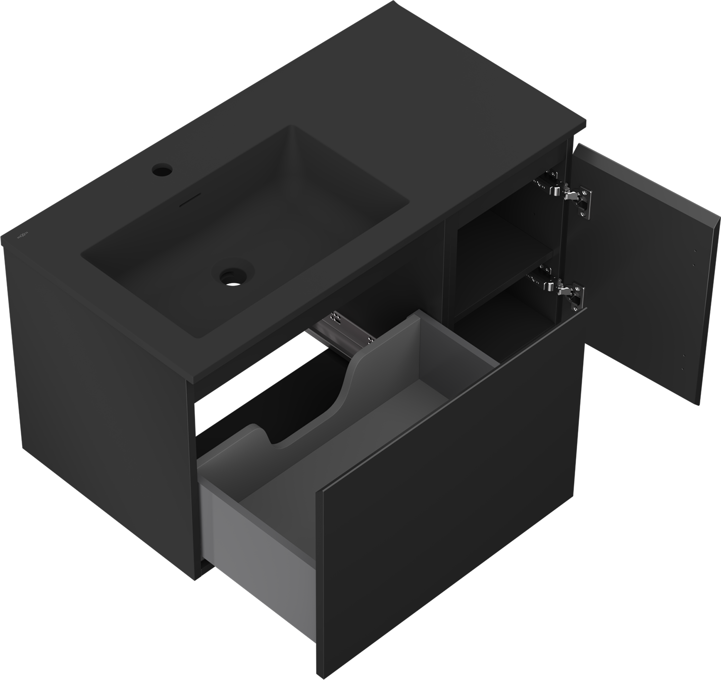 Mexen Orio skrinka do kúpeľne 90 cm s umývadlom Otis ľavá, 1S, 1D, čierna matná - 91A13-09047-3-BBFF71-W18L71