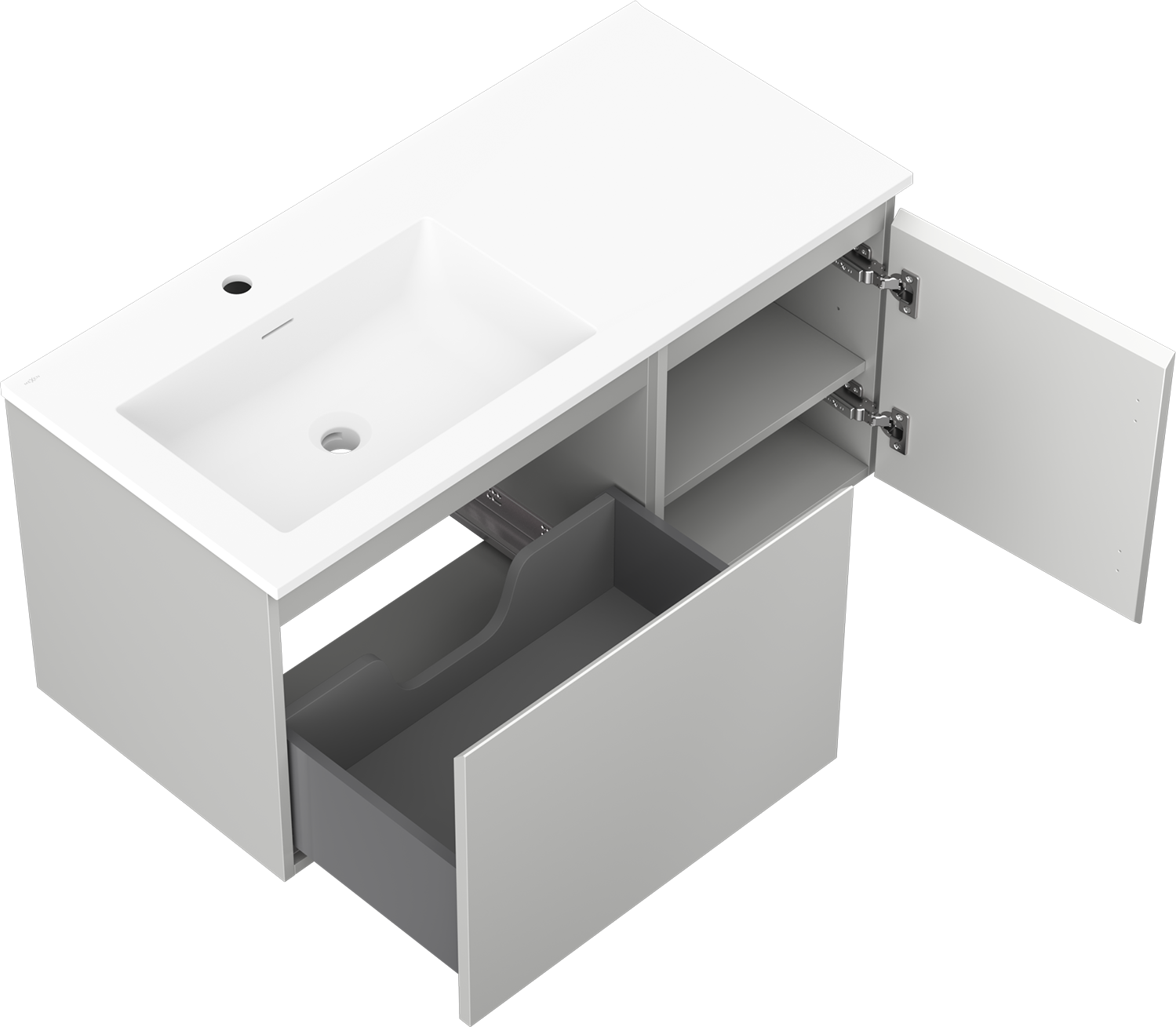 Mexen Orio kúpeľňová skrinka 100 cm s umývadlom Otis ľavou, 1S, 1D, sivá matná/biela matná - 91A13-10047-3-BBFF62-W18L01