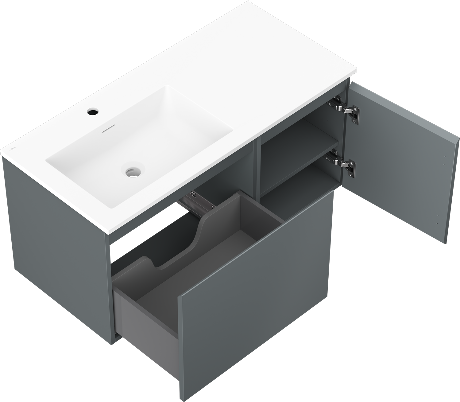 Mexen Orio kúpeľňová skrinka 100 cm s umývadlom Otis ľavé, 1S, 1D, grafit mat/biela mat - 91A13-10047-3-BBFF66-W18L01