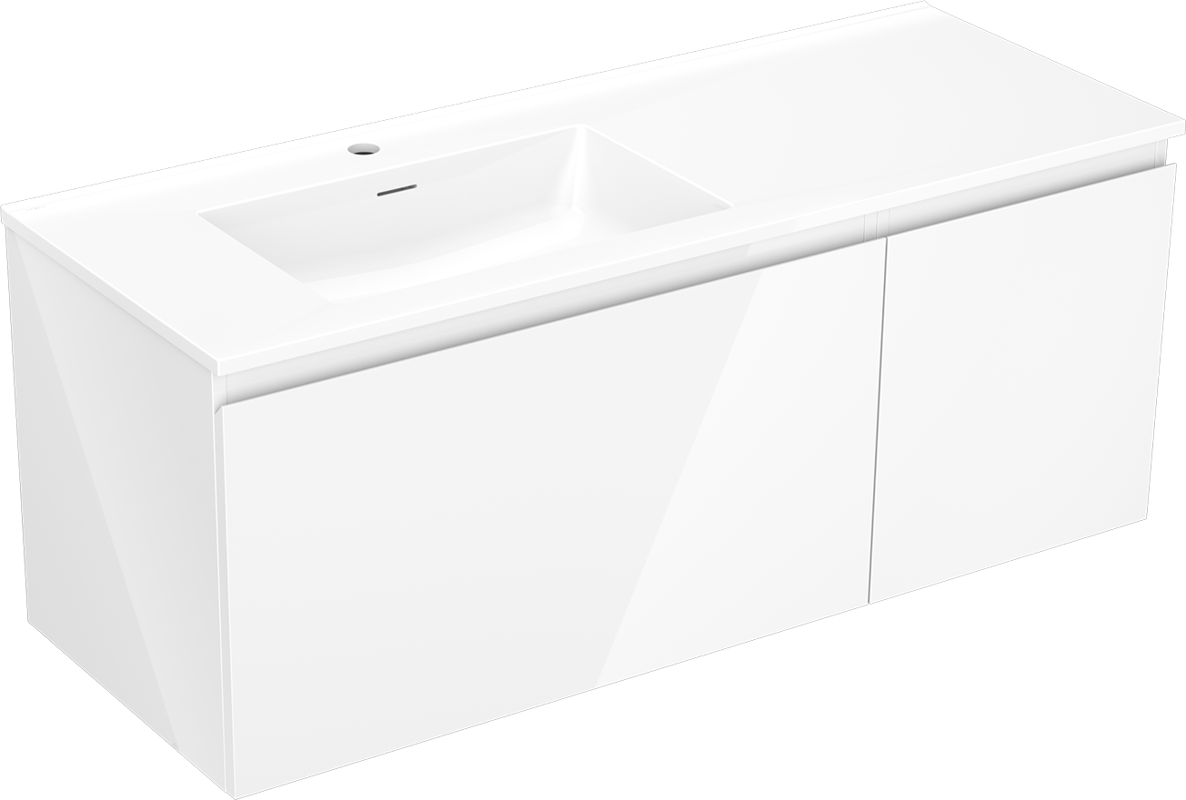 Mexen Orio kúpeľňová skrinka 120 cm s umývadlom Otis ľavým, 1S, 1D, biela lesk - 91A13-12047-3-BBFF00-W18L00