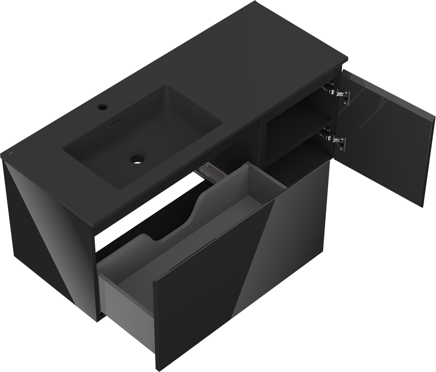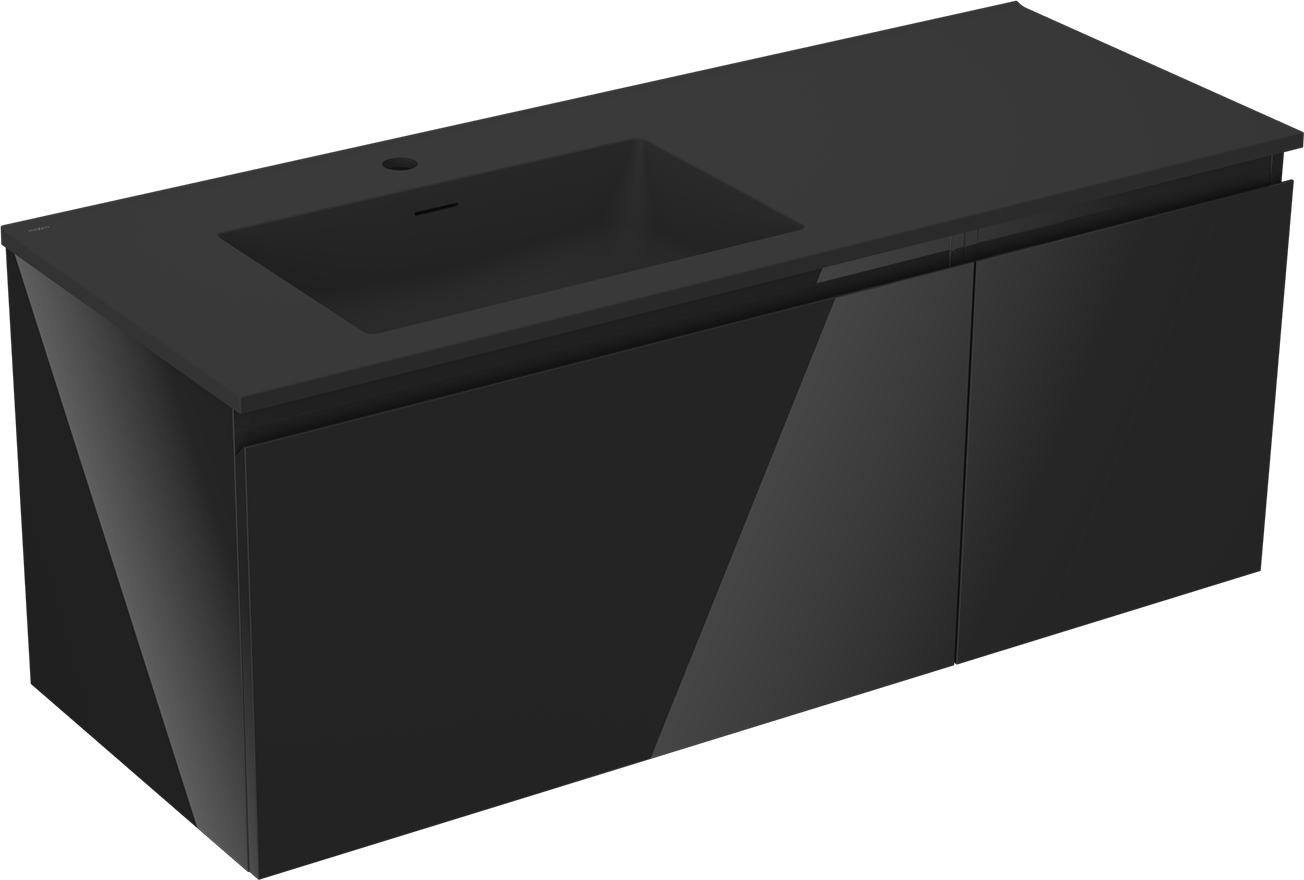 Mexen Orio kúpeľňová skrinka 120 cm s umývadlom Otis ľavým, 1S, 1D, čierny lesk/čierny mat - 91A13-12047-3-BBFF70-W18L71