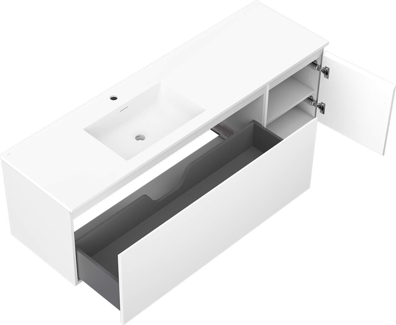Výrez v zásuvke je navrhnutý tak, aby pojal sifón, ktorý je nevyhnutný v umývadlových inštaláciách. Vďaka tomu môže byť nábytok namontovaný plne funkčne, bez nutnosti vzdávať sa priestoru v zásuvke v prospech inštalácie.
