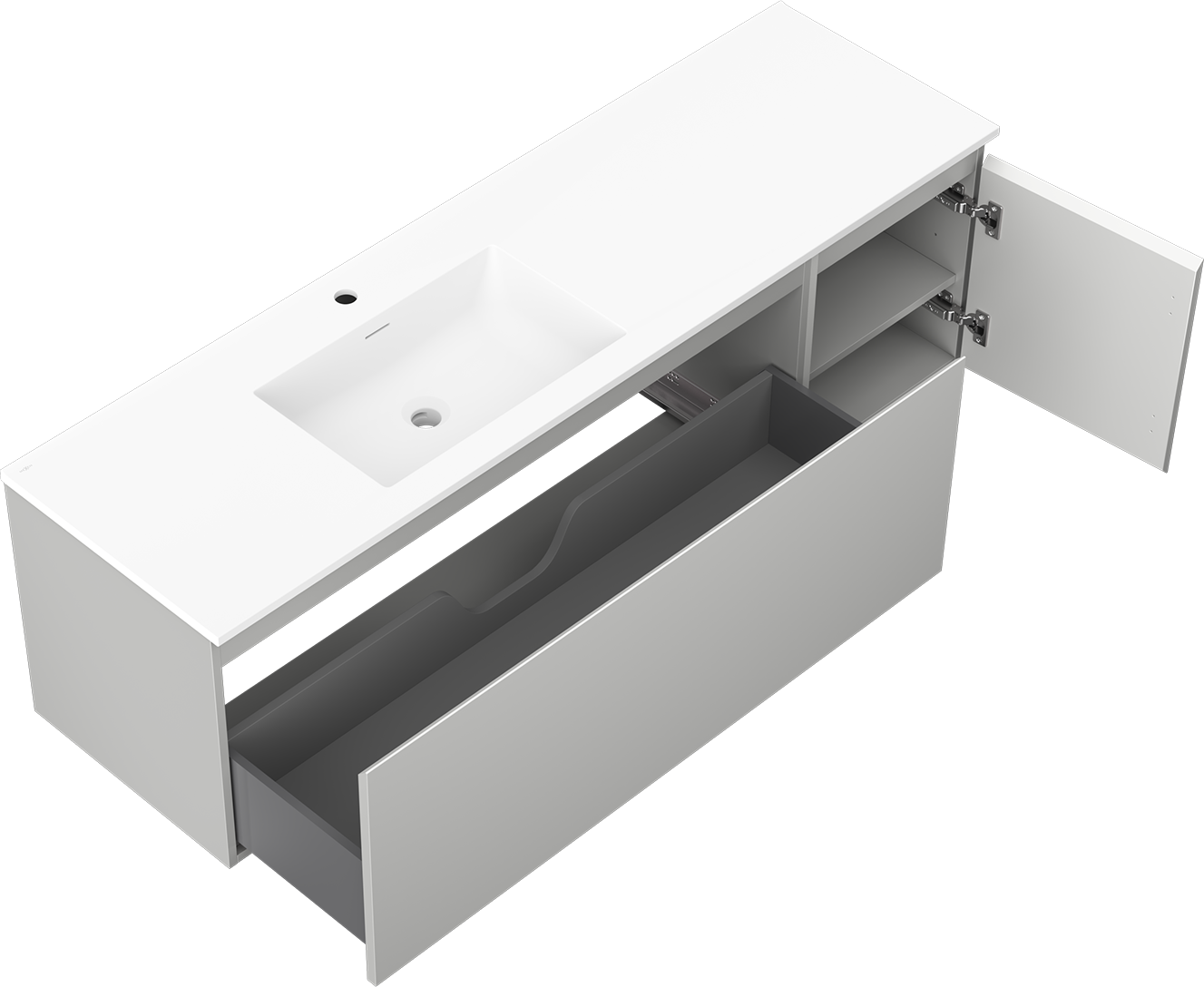 Mexen Orio kúpeľňová skrinka 160 cm s ľavým umývadlom Otis, 1S, 1D, sivá matná/biela matná - 91A13-16047-3-BBFF62-W18L01