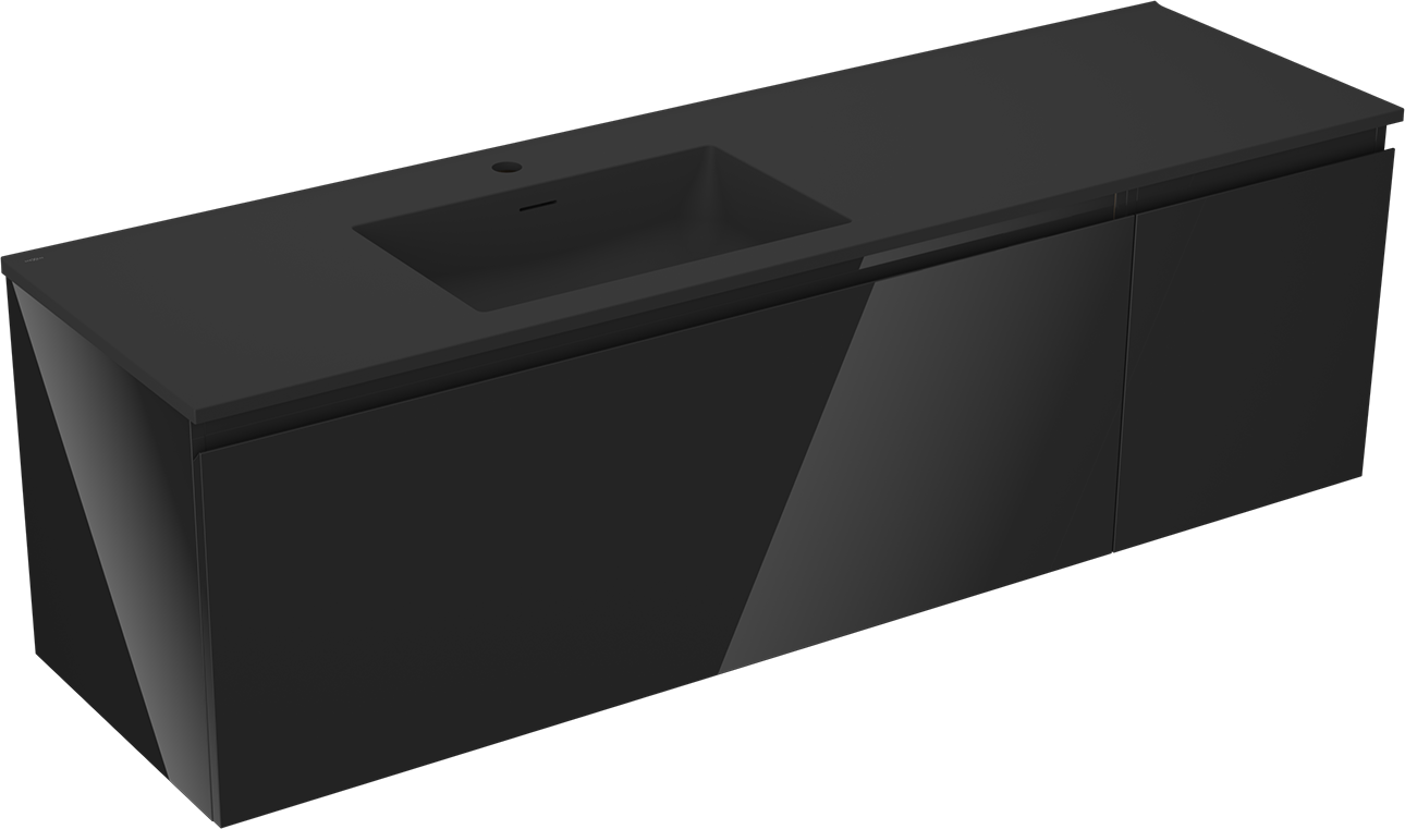 Mexen Orio kúpeľňová skrinka 160 cm s ľavým umývadlom Otis, 1S, 1D, čierny lesk/čierny mat - 91A13-16047-3-BBFF70-W18L71