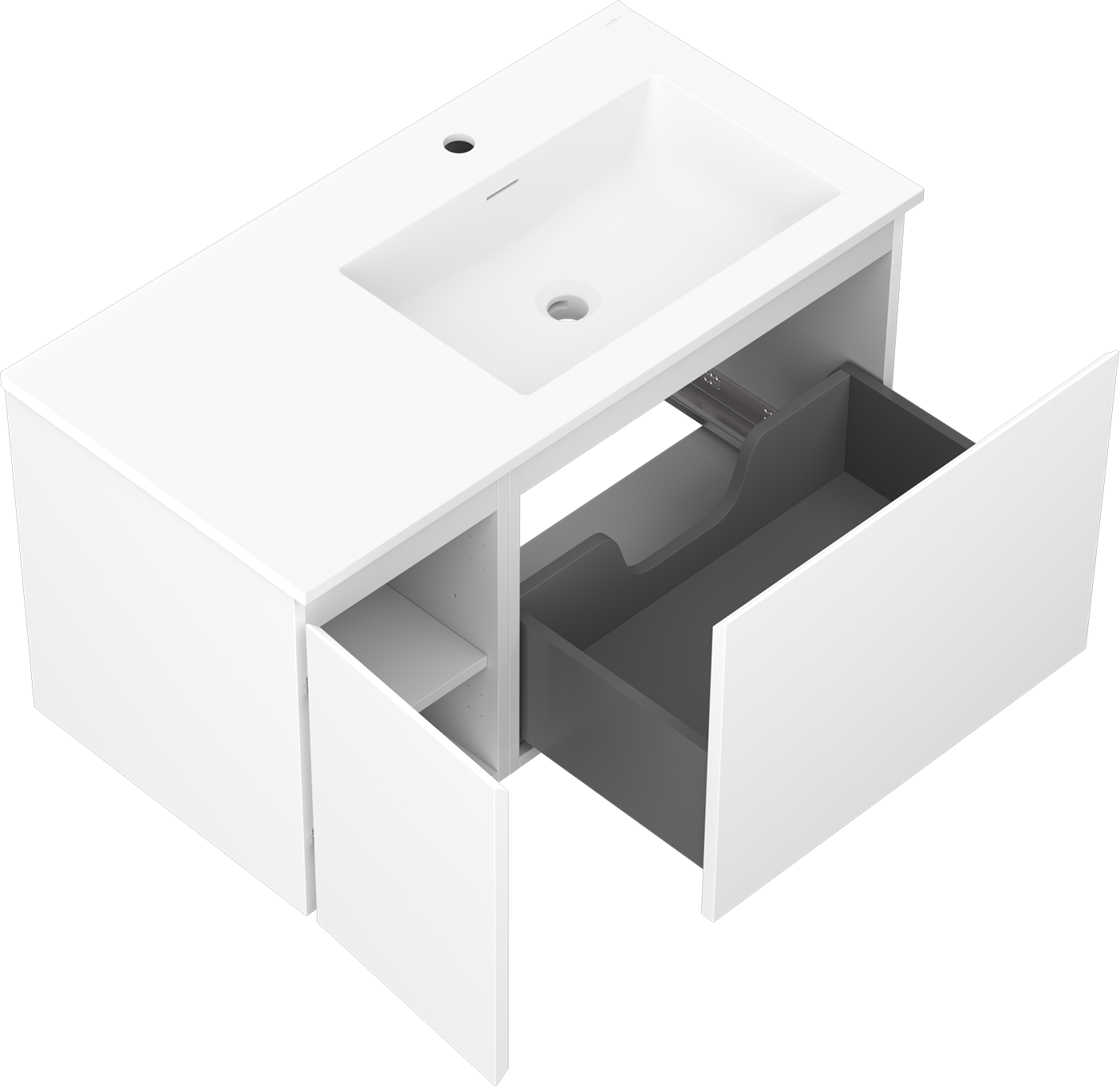 Výrez v zásuvke je navrhnutý tak, aby pojal sifón, ktorý je nevyhnutný v umývadlových inštaláciách. Vďaka tomu môže byť nábytok namontovaný plne funkčne, bez nutnosti vzdávať sa priestoru v zásuvke v prospech inštalácie.