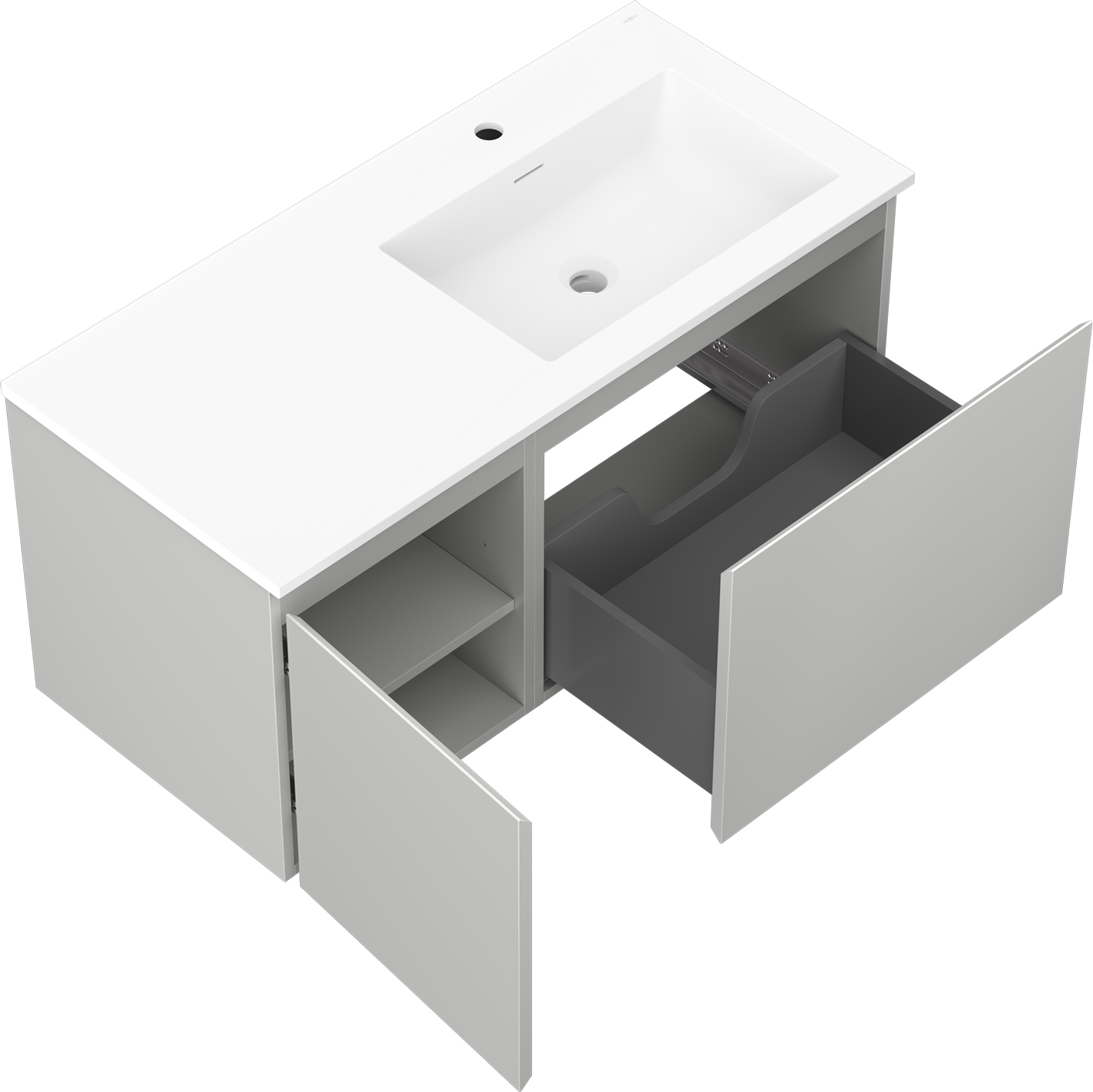 Mexen Orio kúpeľňová skrinka 100 cm s umývadlom Otis pravým, 1S, 1D, sivá matná/biela matná - 91A13-10047-3-BBFF62-W18P01