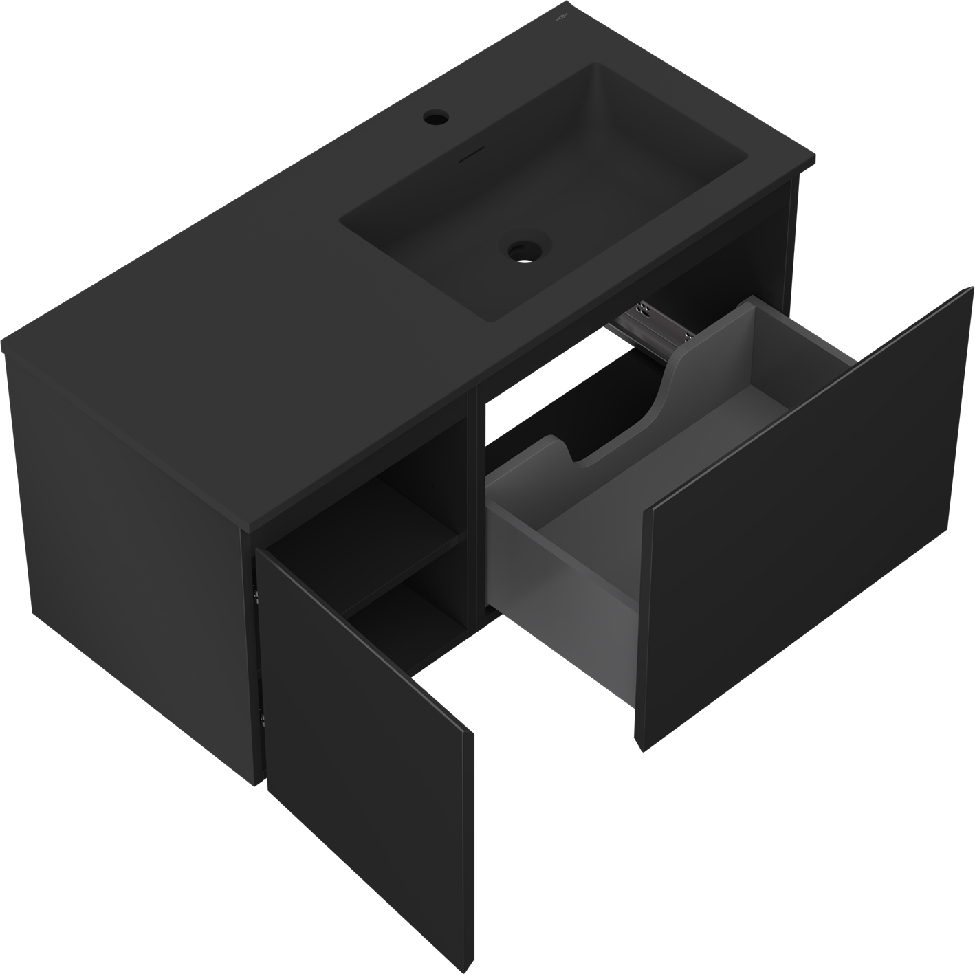 Mexen Orio kúpeľňová skrinka 100 cm s umývadlom Otis vpravo, 1S, 1D, čierna matná - 91A13-10047-3-BBFF71-W18P71