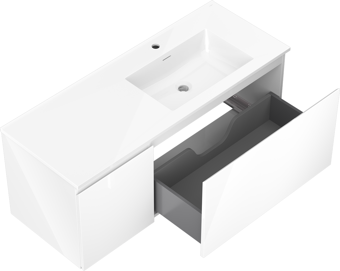 Mexen Orio kúpeľňová skrinka 120 cm s umývadlom Otis pravou, 1S, 1D, biela lesk - 91A13-12047-3-BBFF00-W18P00