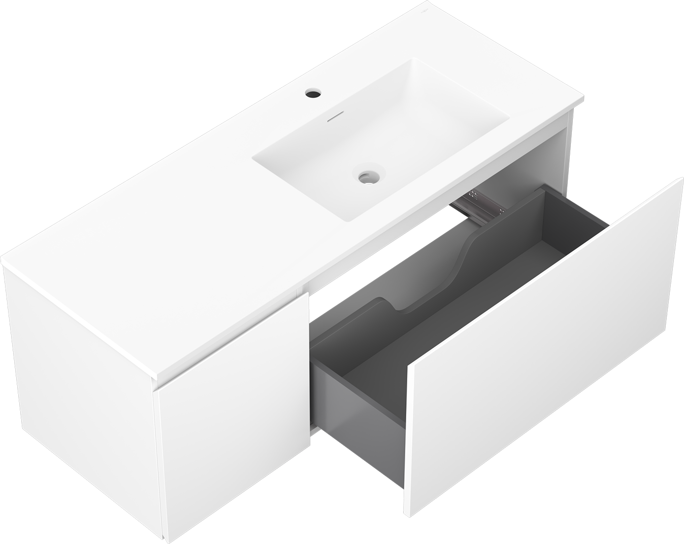 Mexen Orio kúpeľňová skrinka 120 cm s umývadlom Otis pravou, 1S, 1D, biela matná - 91A13-12047-3-BBFF01-W18P01