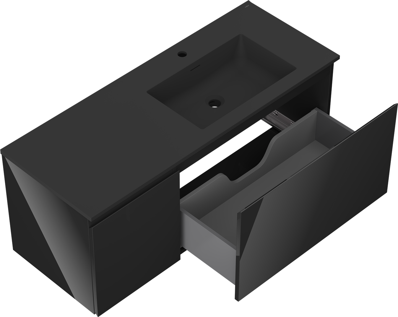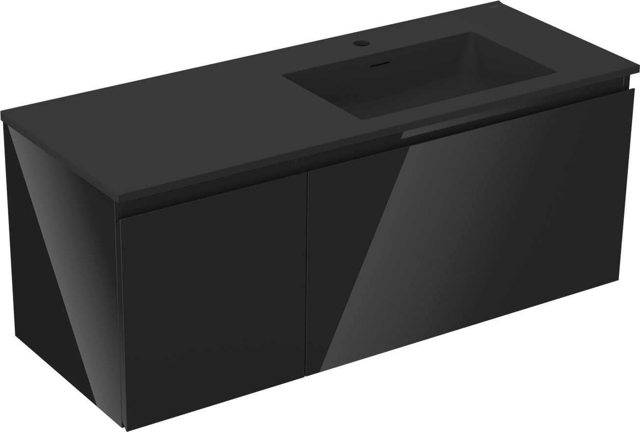 Mexen Orio kúpeľňová skrinka 120 cm s umývadlom Otis pravá, 1S, 1D, čierna lesklá/čierna matná - 91A13-12047-3-BBFF70-W18P71