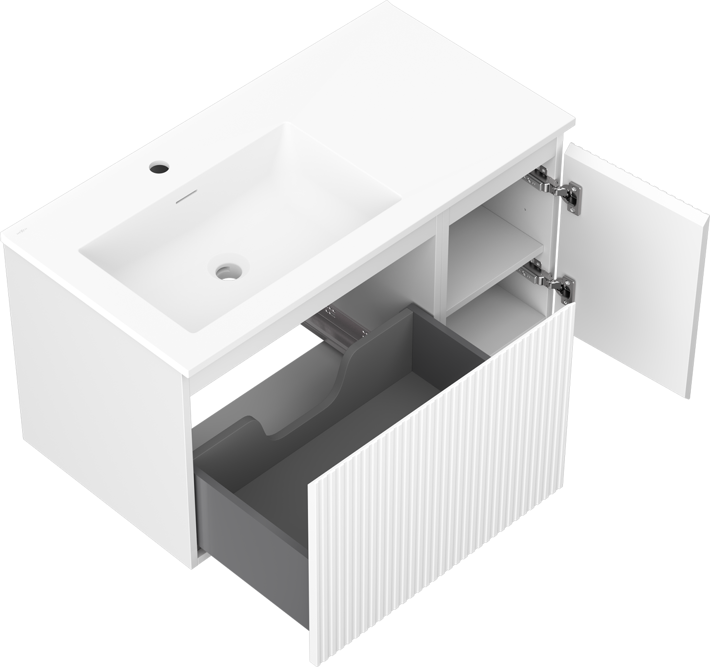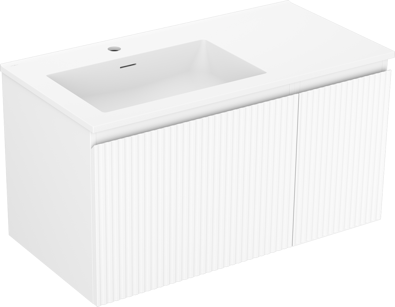 Mexen Rivel kúpeľňová skrinka 90 cm s umývadlom Otis ľavá, 1S, 1D, rýhovaná, biela matná - 91A23-09047-3-BBFF01-W18L01