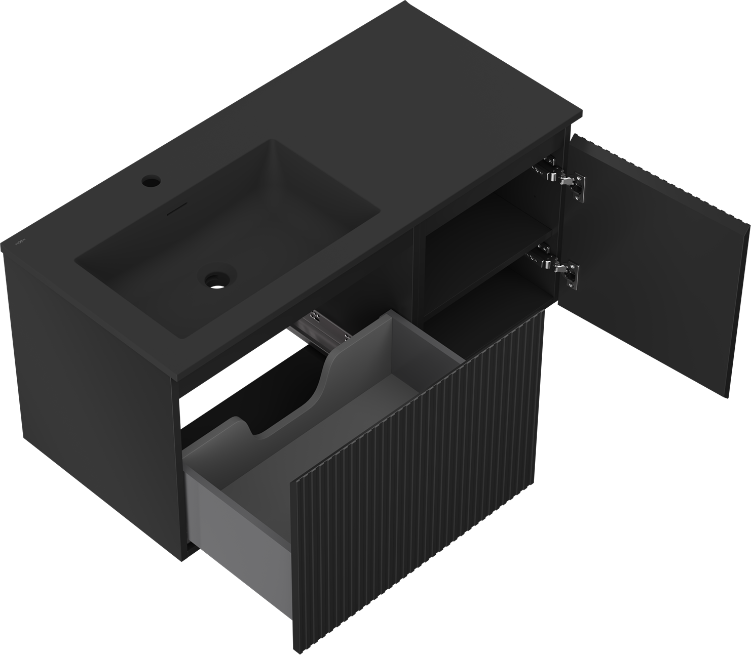 Mexen Rivel kúpeľňová skrinka 100 cm s umývadlom Otis ľavá, 1S, 1D, ryhovaná, čierna matná - 91A23-10047-3-BBFF71-W18L71