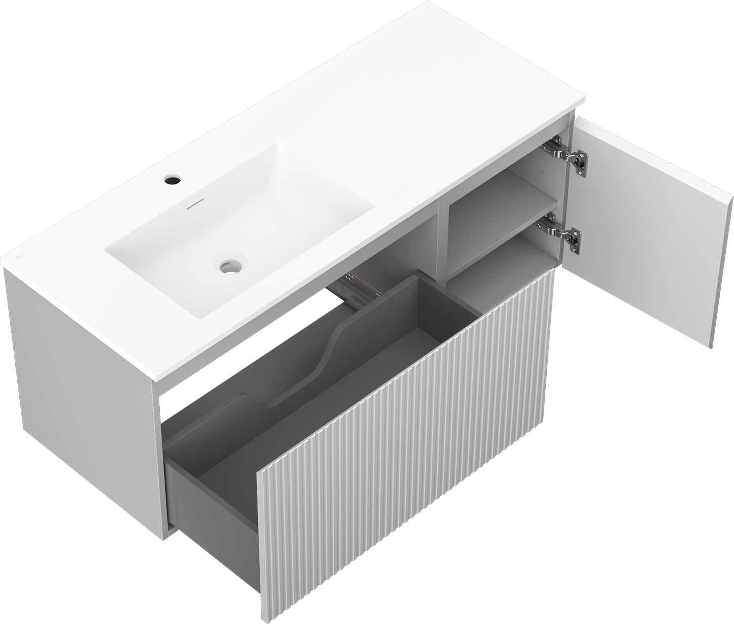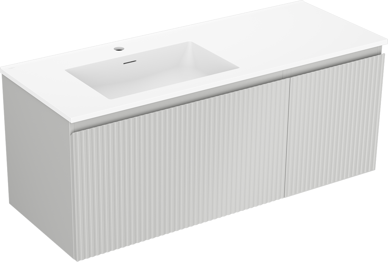 Mexen Rivel kúpeľňová skrinka 120 cm s umývadlom Otis ľavá, 1S, 1D, drážkovaná, sivá matná/biela matná