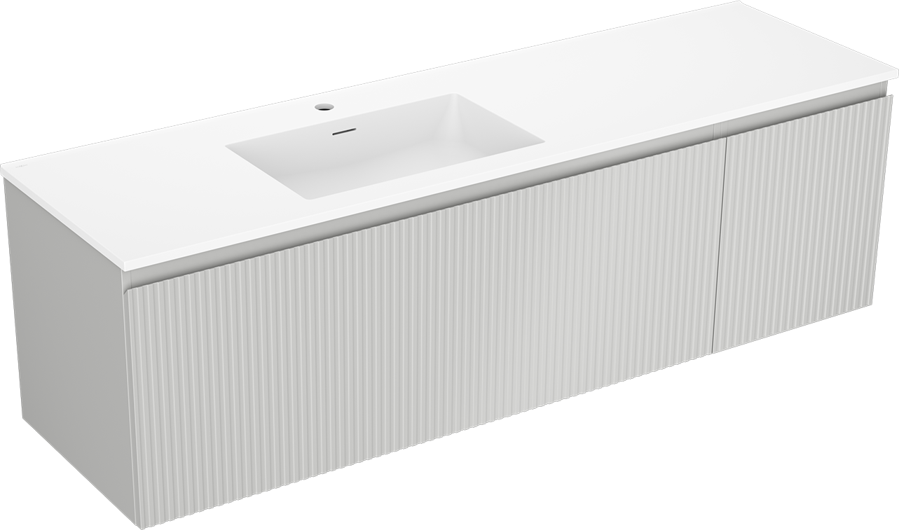 Mexen Rivel kúpeľňová skrinka 160 cm s umývadlom Otis ľavou, 1S, 1D, ryhovaná, sivá matná/biela matná