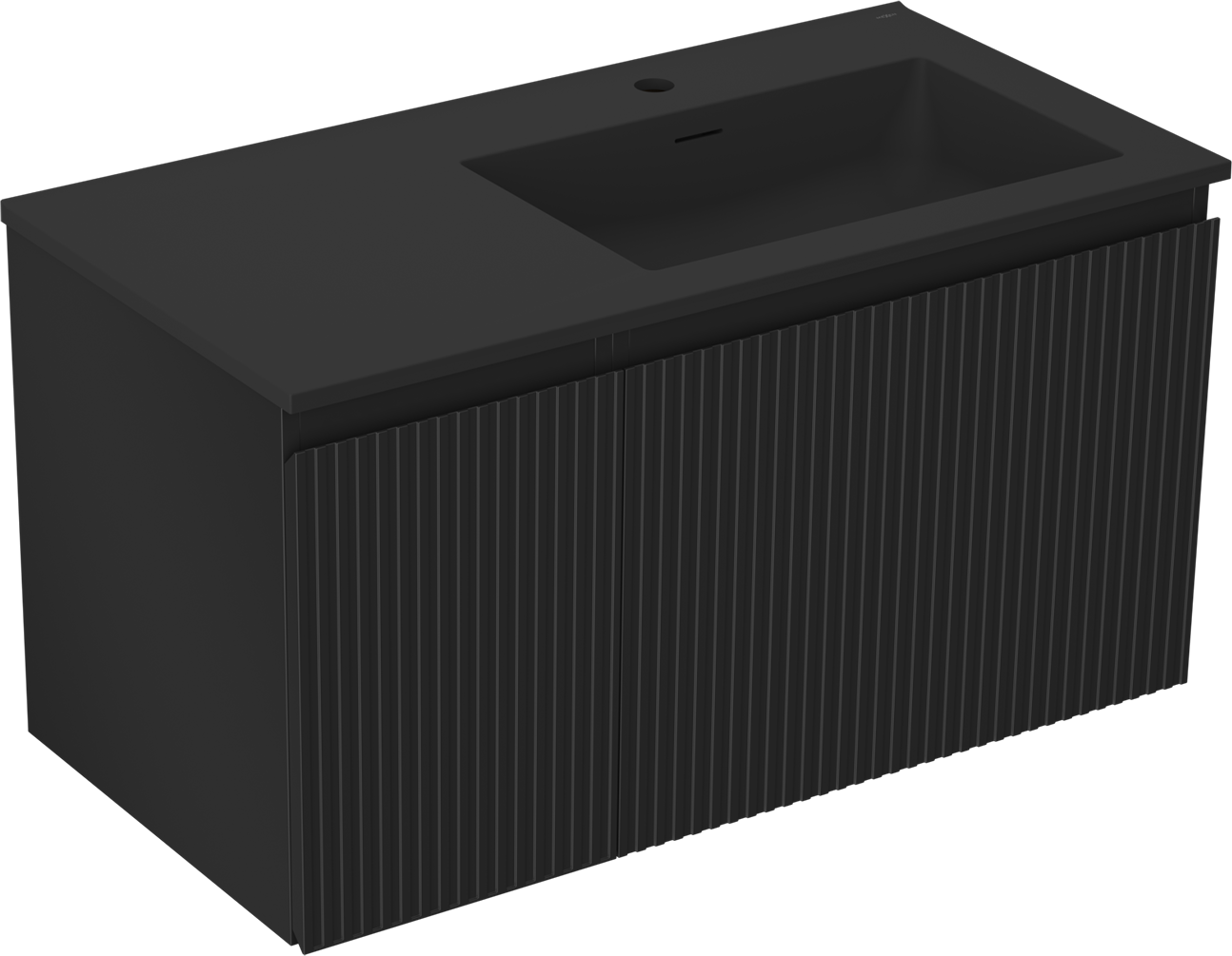 Mexen Rivel kúpeľňová skrinka 90 cm s umývadlom Otis pravá, 1S, 1D, ryhovaná, čierna mat - 91A23-09047-3-BBFF71-W18P71