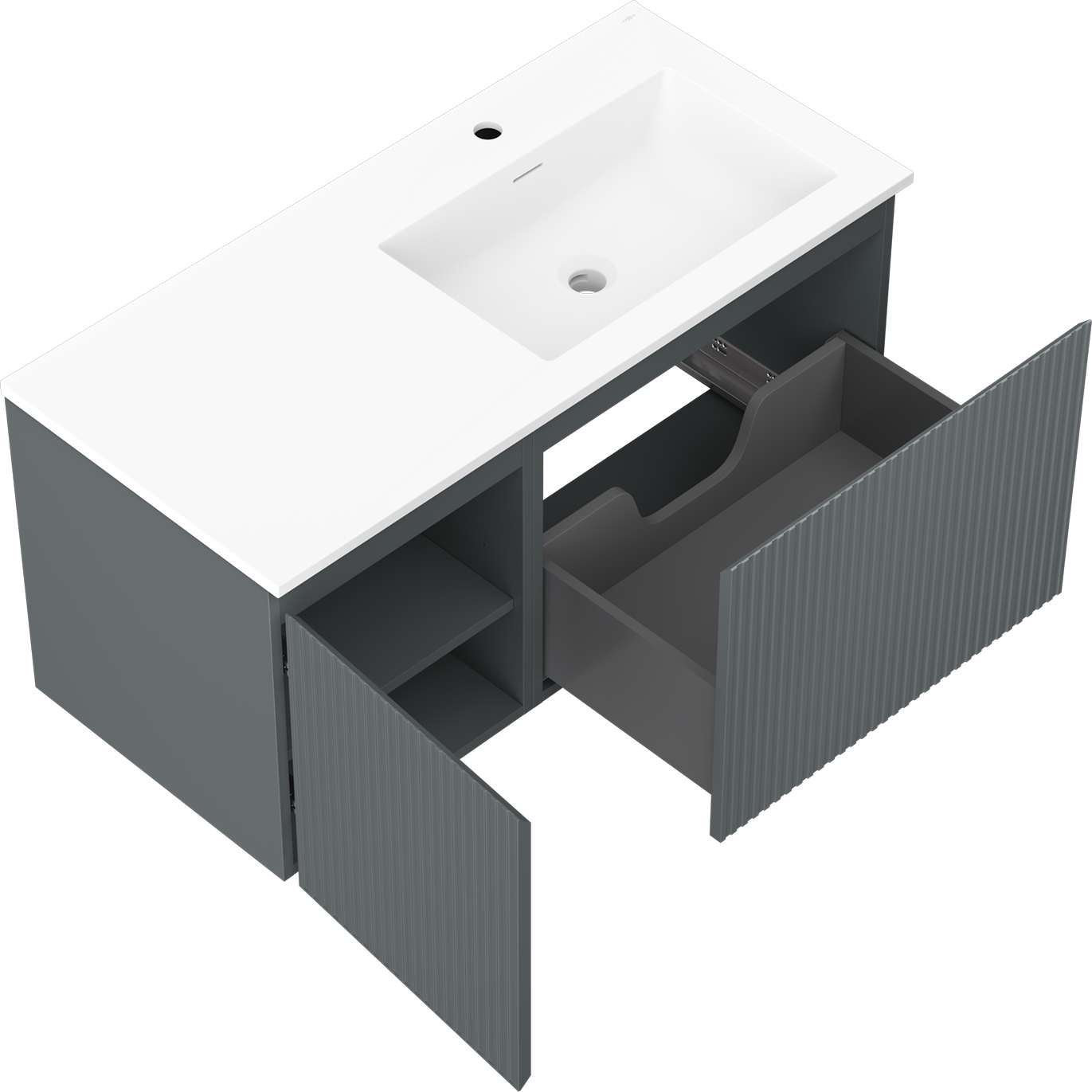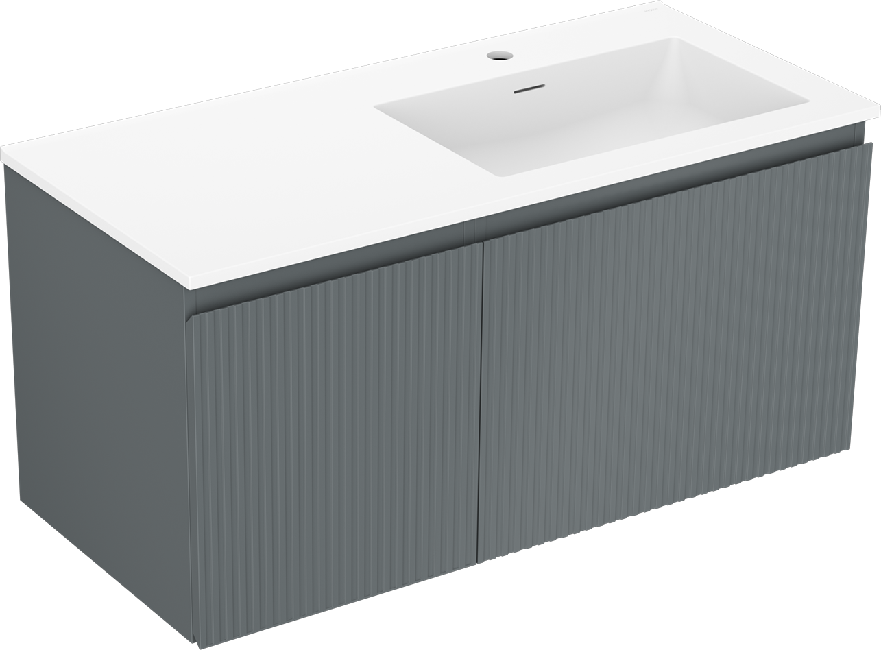 Mexen Rivel kúpeľňová skrinka 100 cm s umývadlom Otis pravá, 1S, 1D, ryhovaná, grafit/biela mat - 91A23-10047-3-BBFF66-W18P01