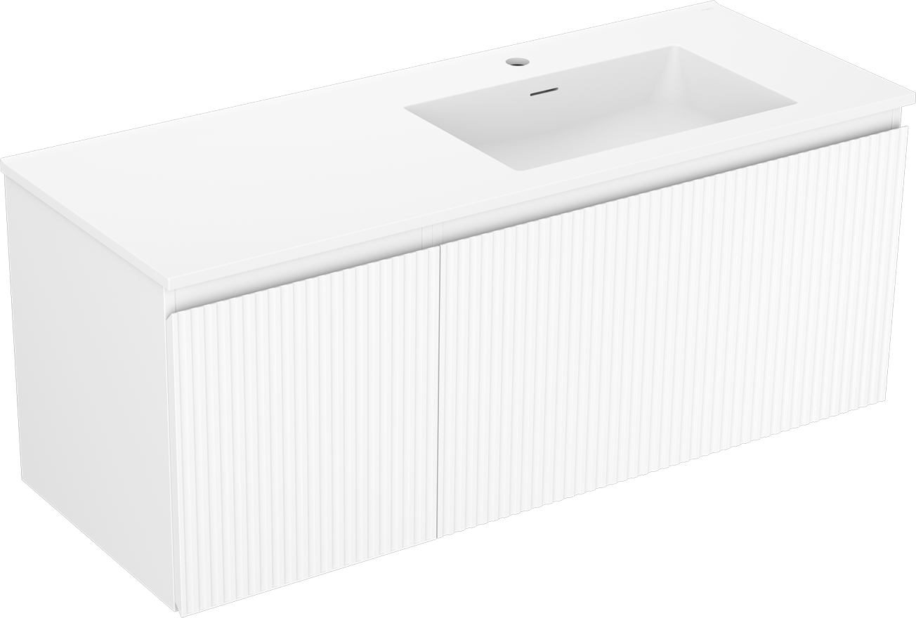 Mexen Rivel kúpeľňová skrinka 120 cm s pravým umývadlom Otis, 1S, 1D, ryhovaná, biela matná - 91A23-12047-3-BBFF01-W18P01
