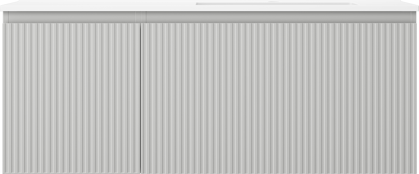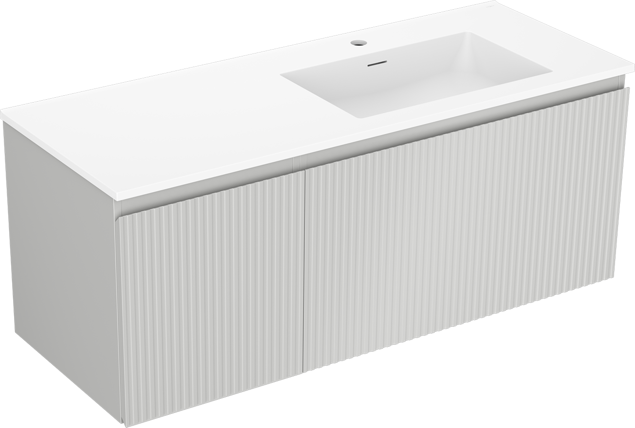 Mexen Rivel kúpeľňová skrinka 120 cm s umývadlom Otis pravá, 1S, 1D, ryhovaná, šedá matná/biela matná